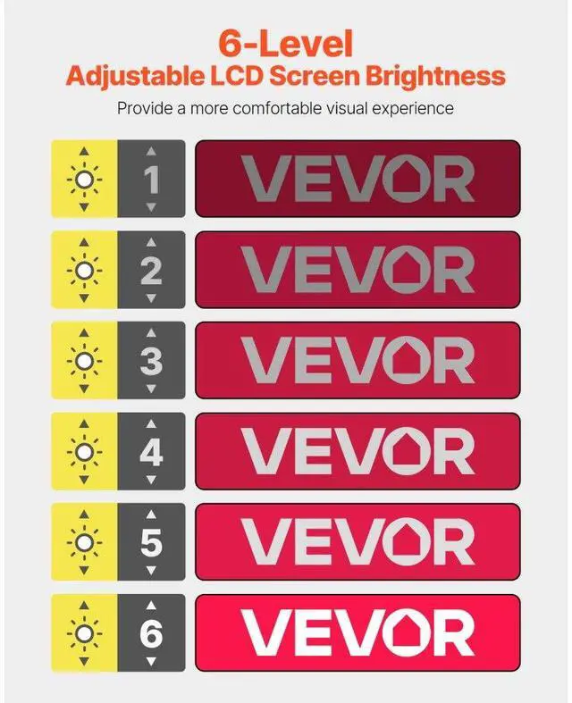 Screen Brightness: 6 Levels Adjustable