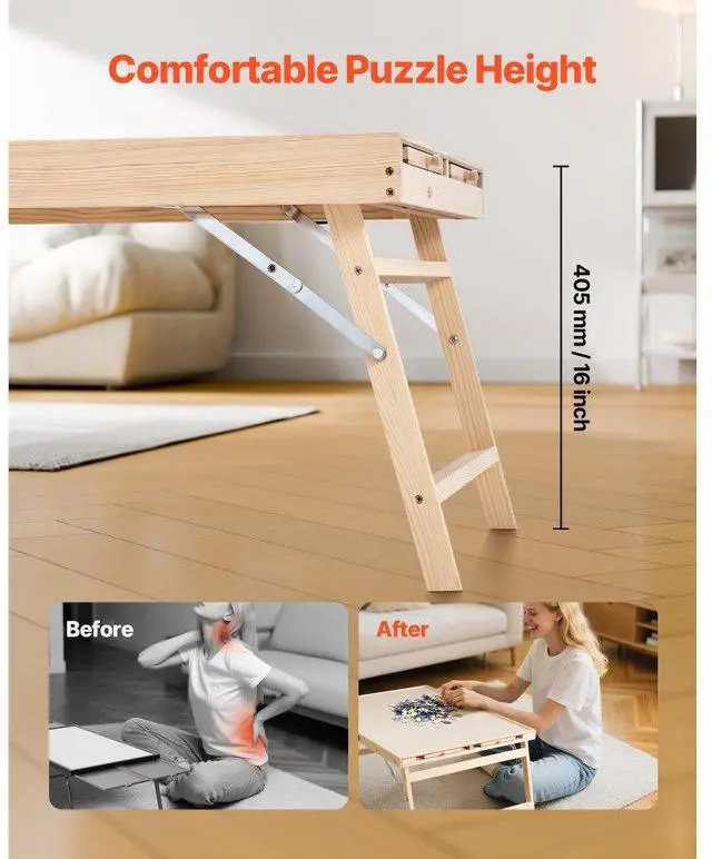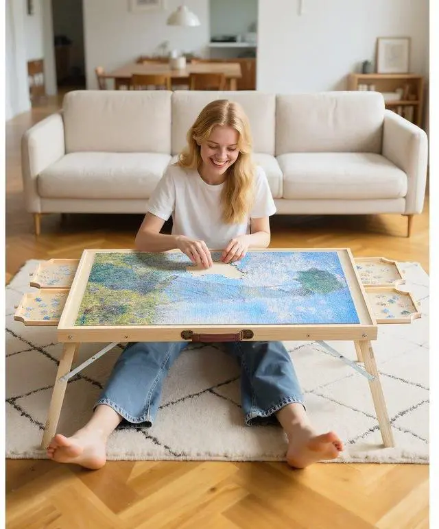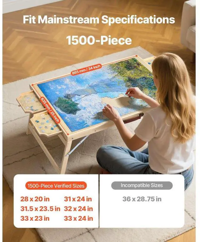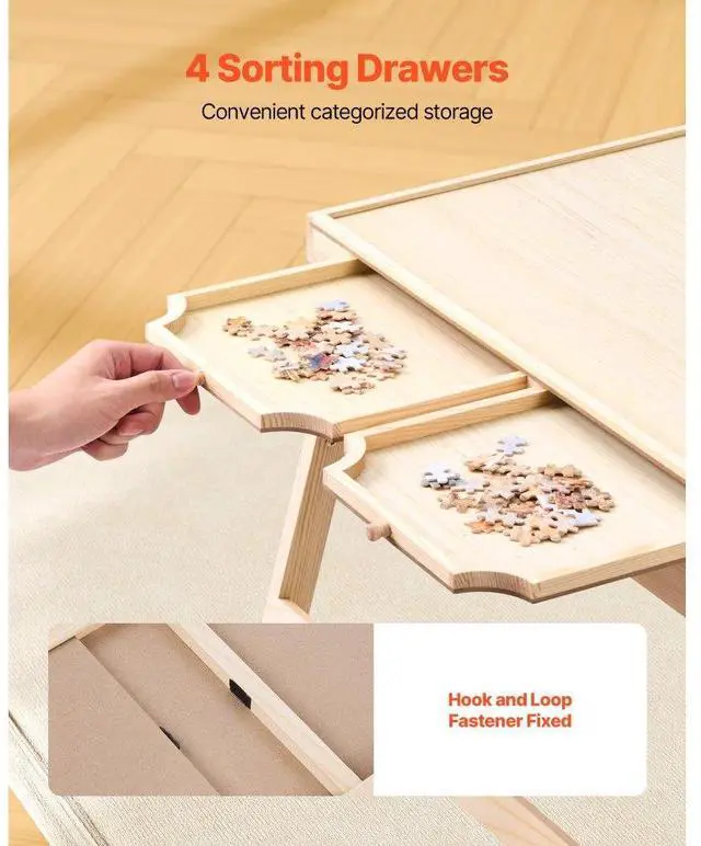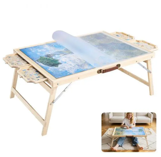 1500 Piece Puzzle Board with Folding Leg Drawer Portable Wooden Jigsaw 34x25 in Total 4 Drawers Foldable Table Legs Removable Cover Useful Cover Multi-functional The Ideal Gift Number of
