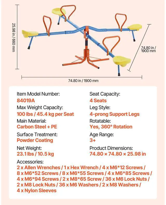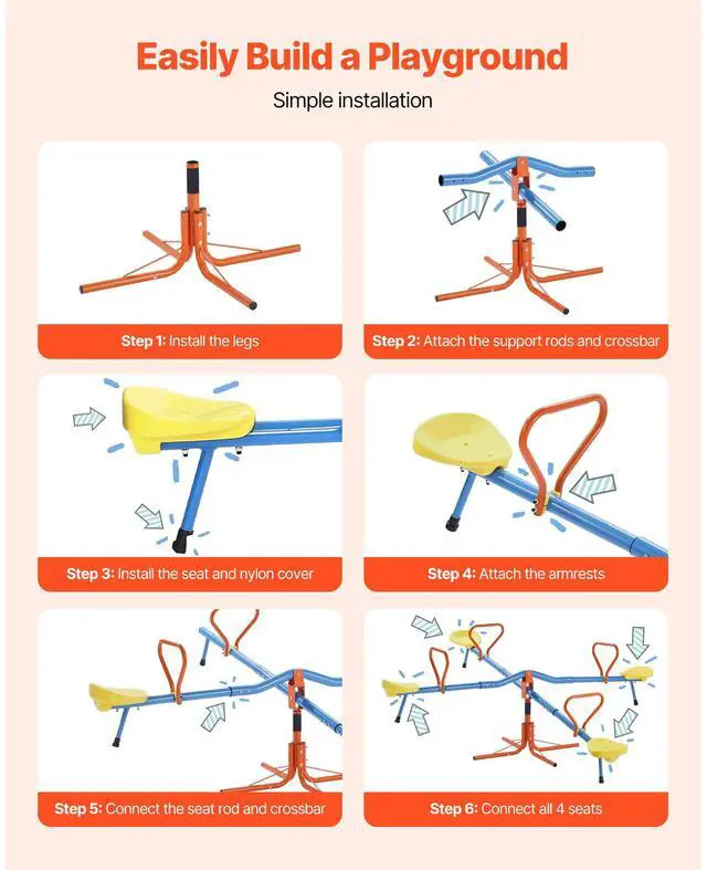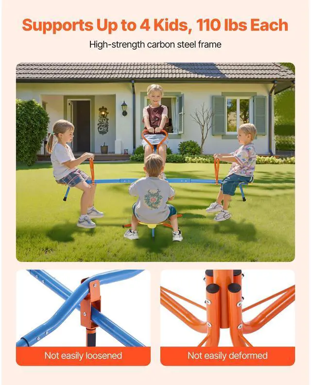VEVOR 2-4 Kids Seesaw 110 lbs Capacity 360 Degrees Rotating Teeter Totter Age 3+ Fun Rotating Seesaw Stable Upgrade Away from Screens Security-first Design Indoor & Outdoor Use Vibrant Colors to Spark Interest