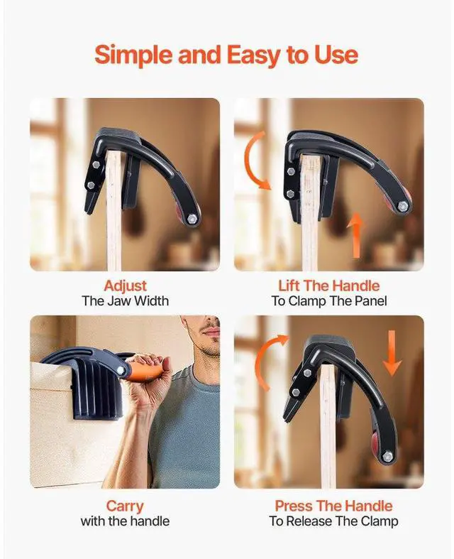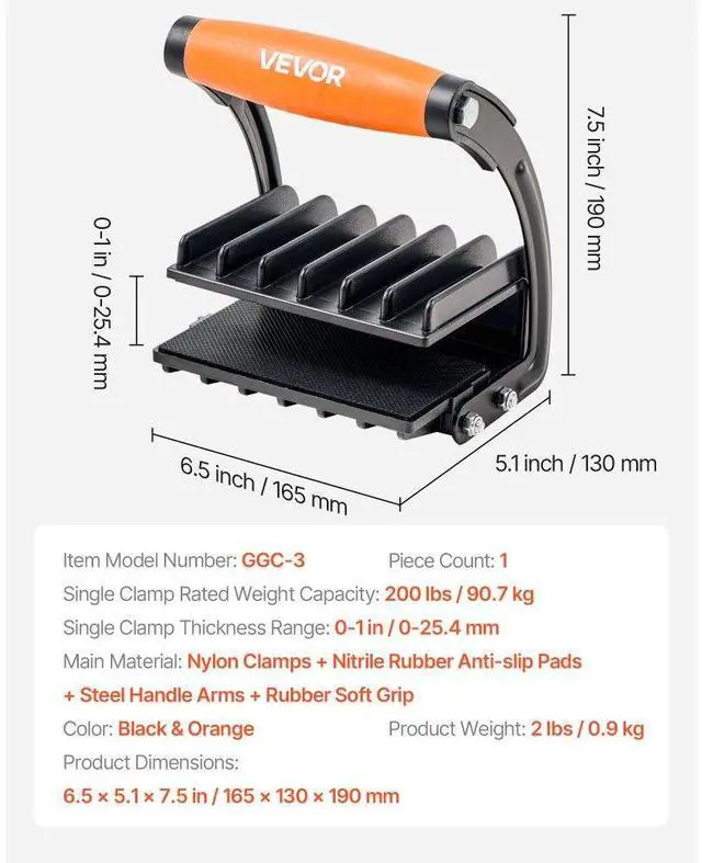 Material: Nylon Clamps + Nitrile Rubber Anti-slip Pads + Steel Handle Arms + Rubber Soft Grip