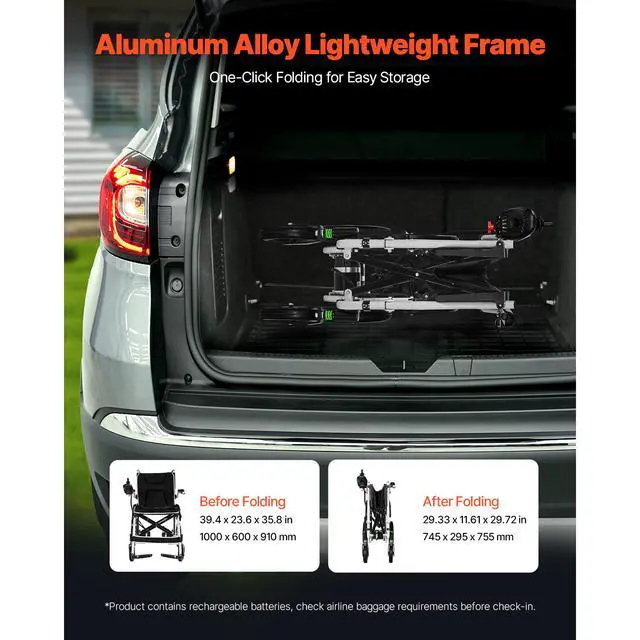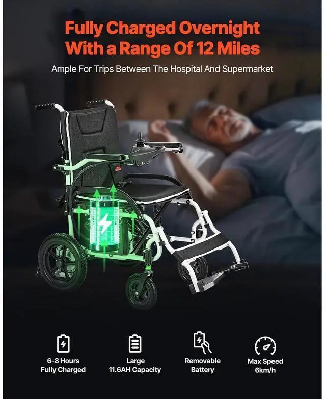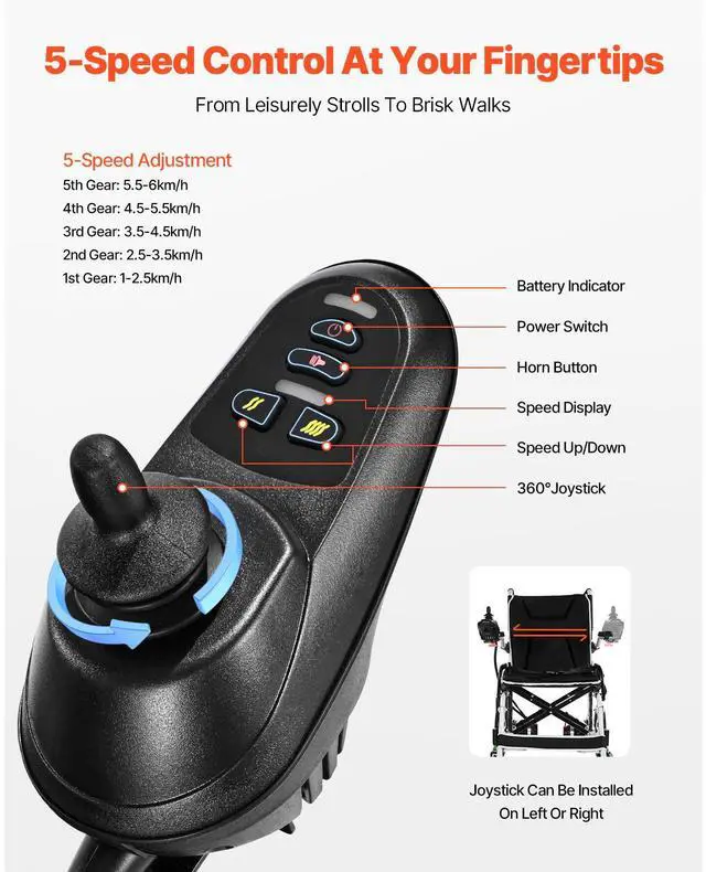 Electric Wheelchair 220lbs Capacity Foldable Lightweight 12 Mile Multi-Function Joystick Control Aluminum Alloy Frame Dual Assist Hand Brakes Simple Installation Directional Control Reliable
