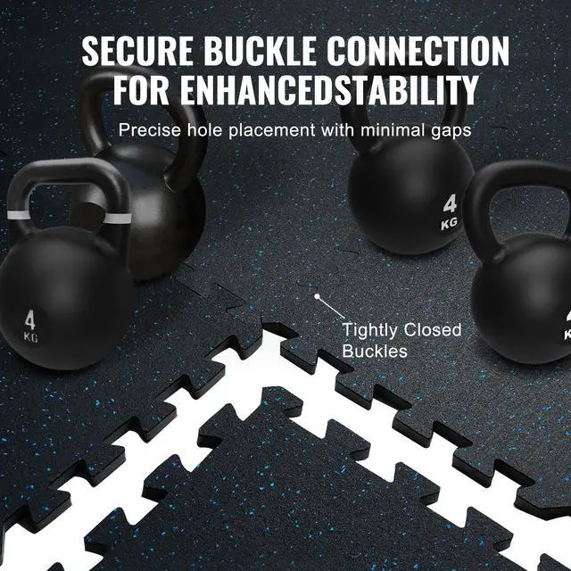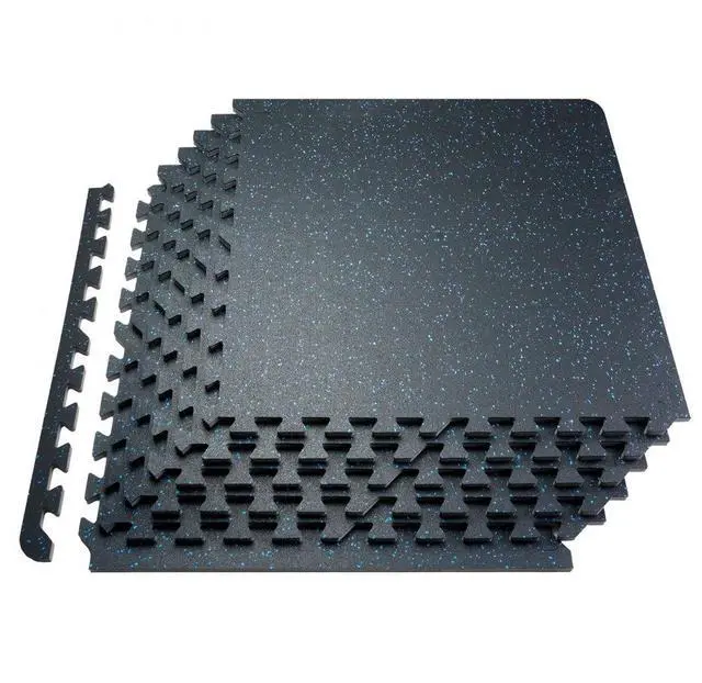 VEVOR 12 PCS 0.56" Thick Gym Floor Mats, 24" x 24" EVA Foam & Rubber Top Interlocking Workout Floor Mats with 48 sq. ft Coverage, Waterproof Exercise Puzzle Flooring for Gym, Home, Garage, Basement, Black & Blue Shock Absorption and Rebound Durable and Scratch-Resistant Strong Soundproofing Easy Assembly Convenient Cleaning Edge Protectors Thickness: 0.56 in, Area: 48 SQFT, Set
