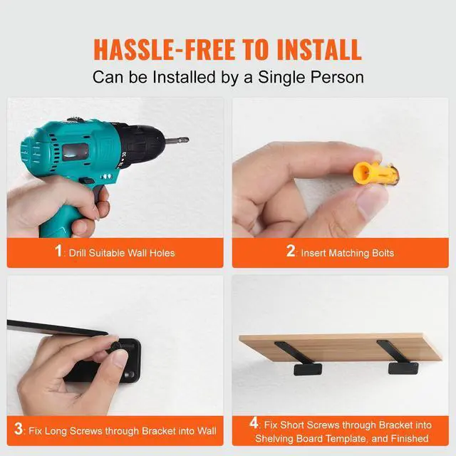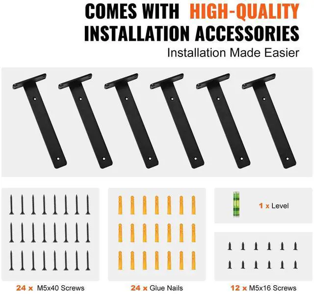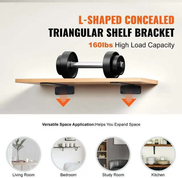 VEVOR Shelf Bracket, 6L x 4W x 1.6H 6 Pcs, Heavy Duty Floating Shelf Brackets, Brackets for Shelves, 5mm Thick Matte Black L Shelf Bracket,Steel Shelving Brackets with 160 lbs Load Capacity