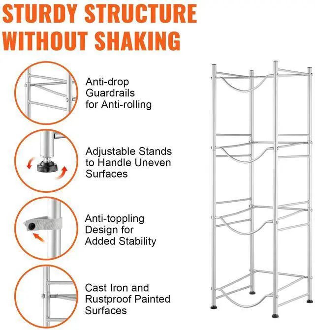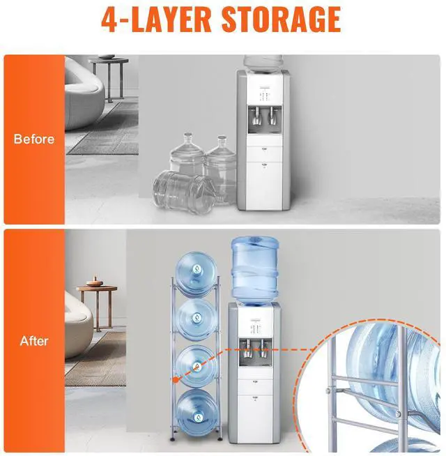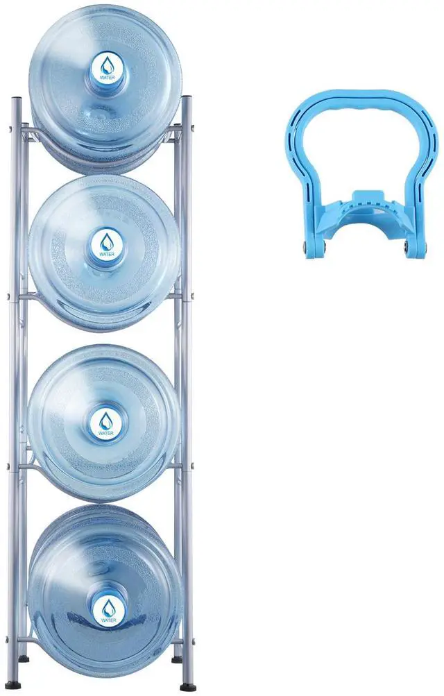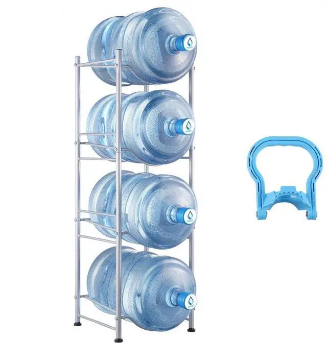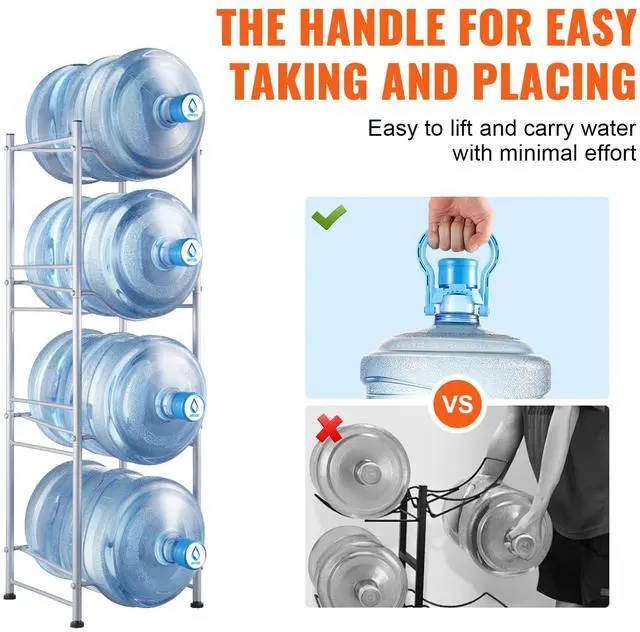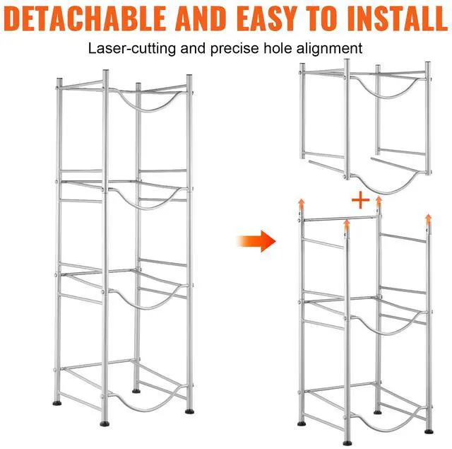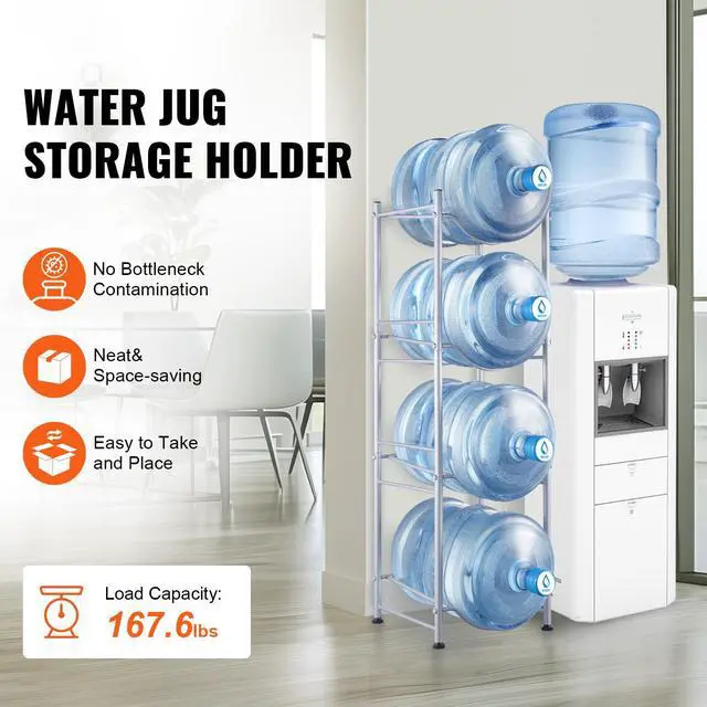 VEVOR 4 Tiers Water Jug Holder Single Row Water Bottle Rack for 4 Bottles Silver, Heavy Duty Water Dispenser Rack with 4 Slots for Gallon Jugs, Detachable Water Storage Shelf Organizer for Home Living Room Office
