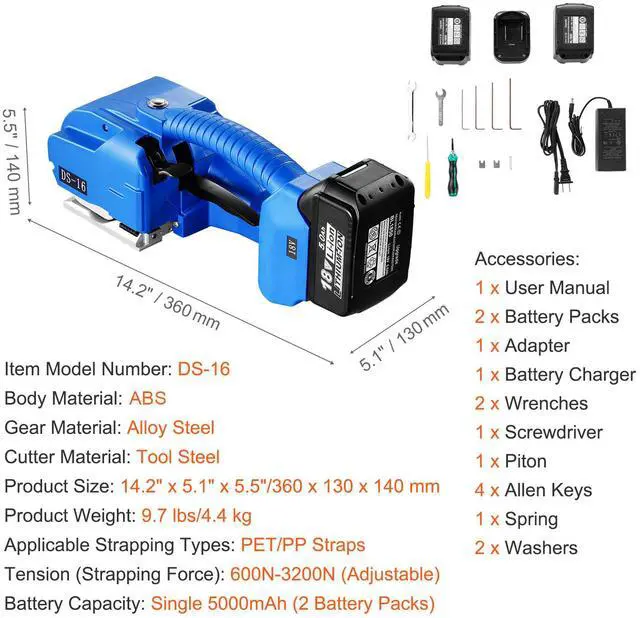 Tension (Strapping Force): 600N-3200N (Adjustable)