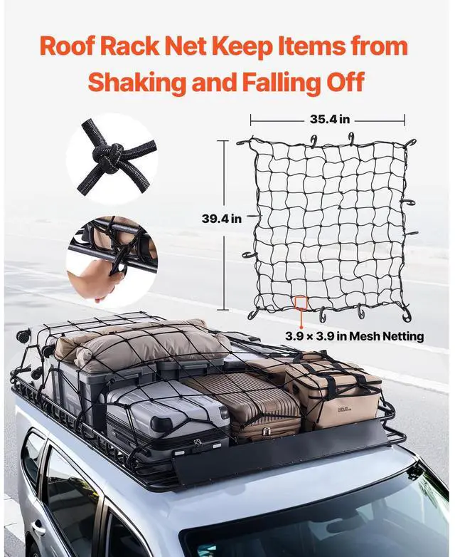 Roof Rack Net Dimensions: 35.4 x 39.4 in / 900 x 1000 mm