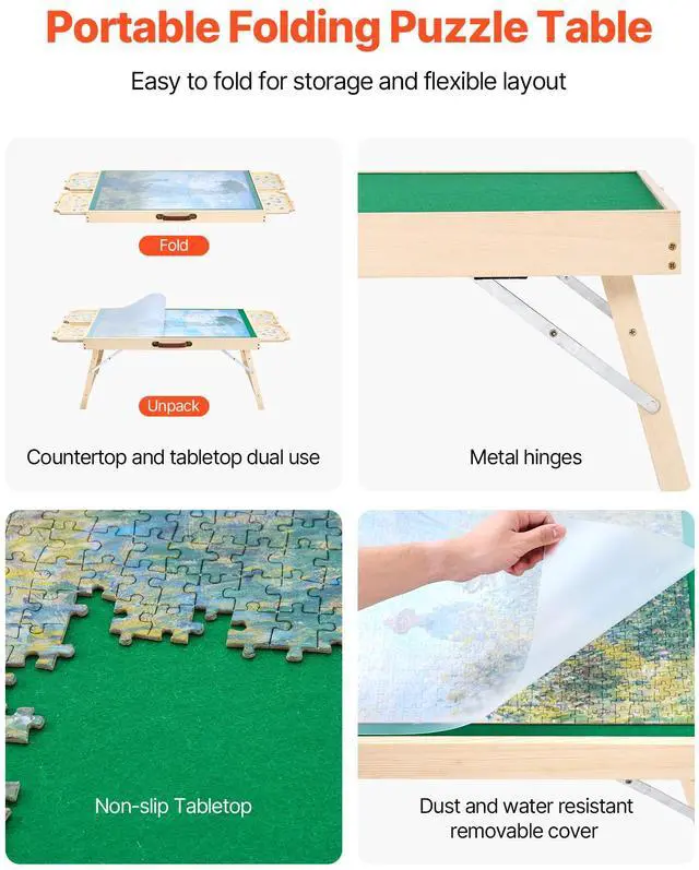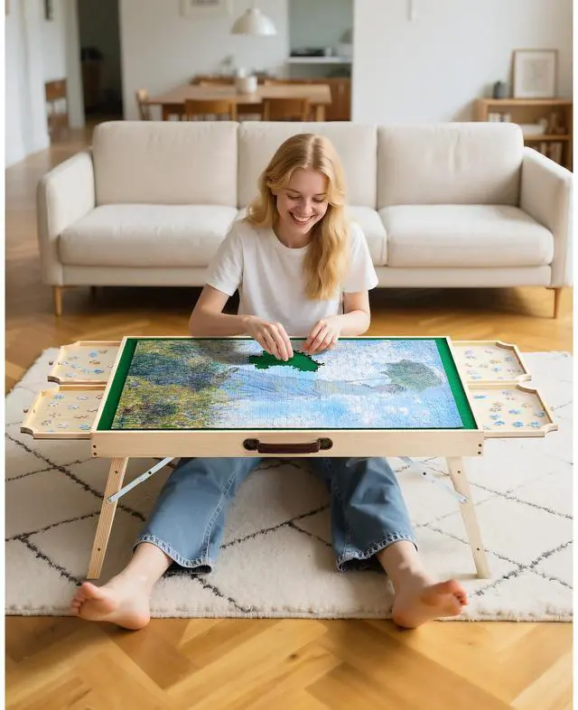 • 1500 Piece Puzzle Board with Folding Leg Drawer Portable Wooden Jigsaw 34x25 in