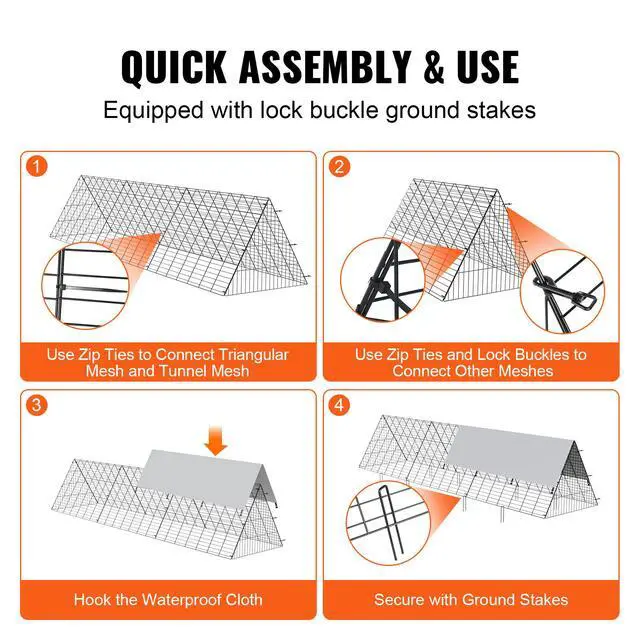 VEVOR Chicken Tunnels, 118.1 x 28 x 24.2 inch (LxWxH) Chicken Tunnels for Yard, Portable Chicken Tunnels for Outside Easy Installation, Chicken Coop Run, Suitable for Chickens, Ducks, Rabbits