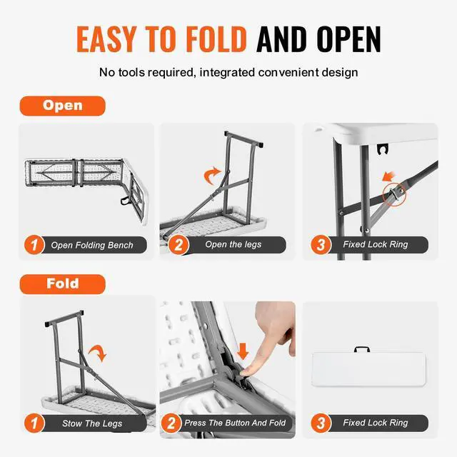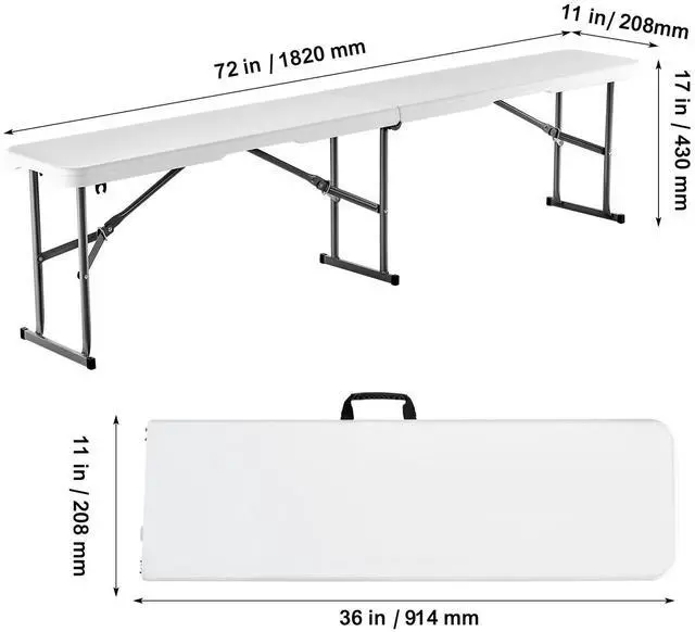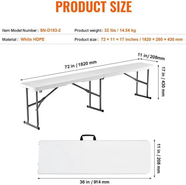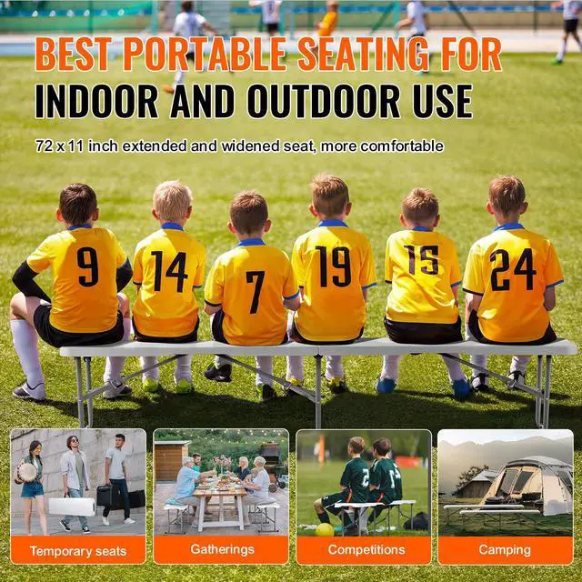 VEVOR 6FT Plastic Folding Bench Portable Outdoor Bench for Picnic Camping 2 Pack