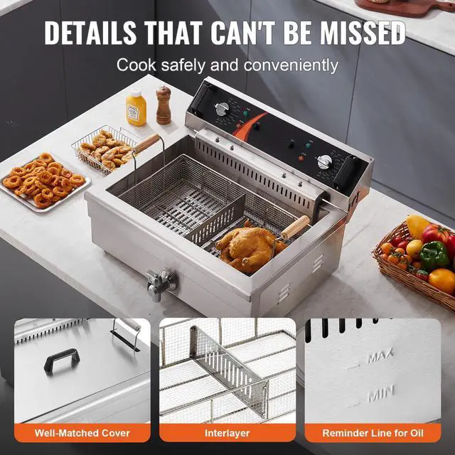 VEVOR Commercial Electric Deep Fryer Countertop Deep Fryer 3000W 30.6Qt / 29L