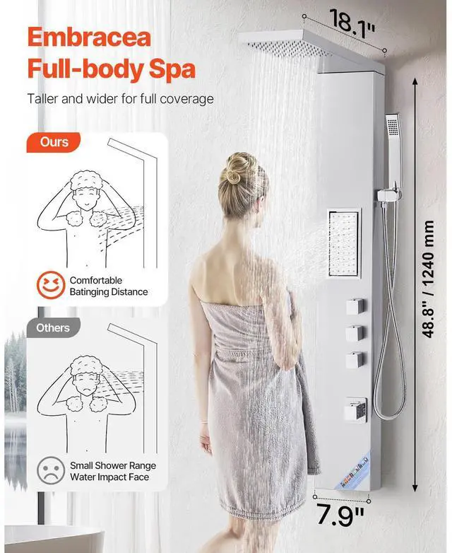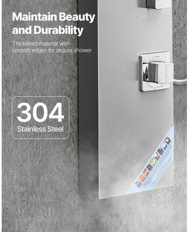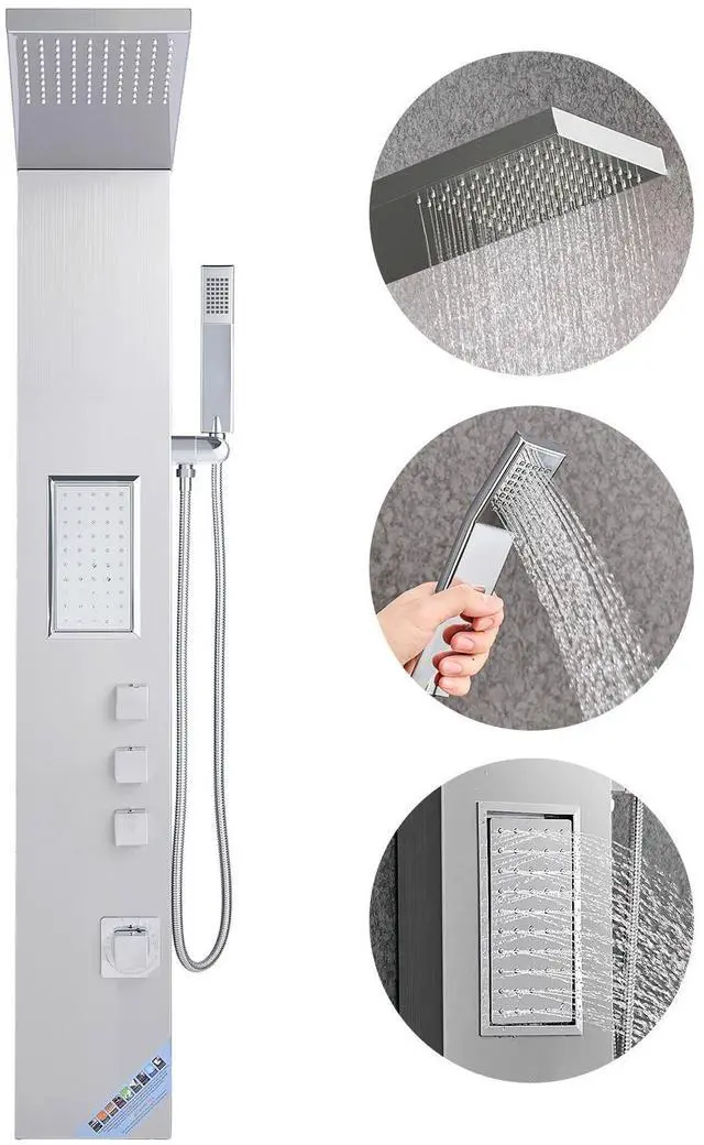 Shower Panel Tower System Stainless Steel Column Rainfall Head Massage Jet 3Mode