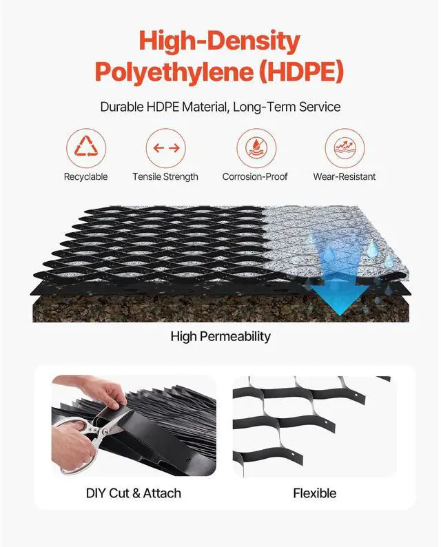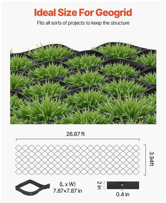 Ground Grid 2-Inch Depth Geocell Grid 26.87x3.94 FT / 8200x1200 mm for Gravel
