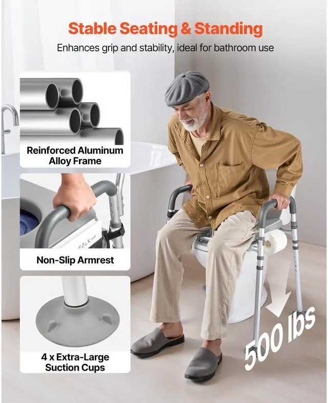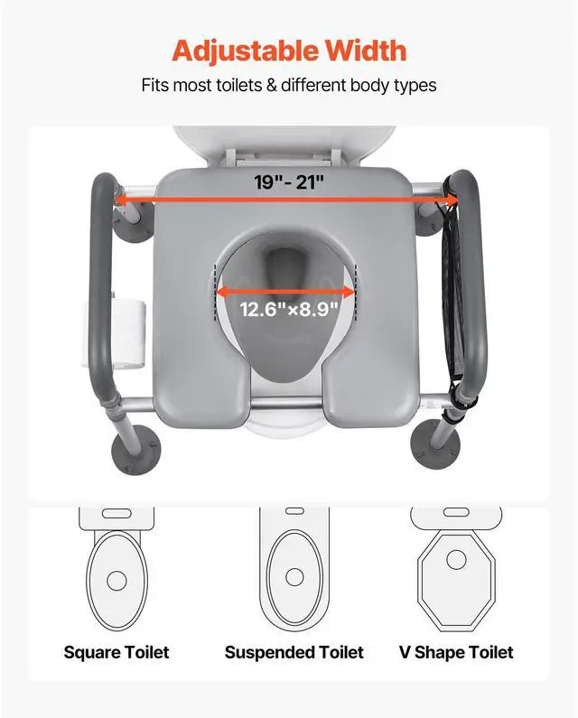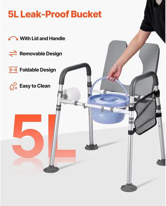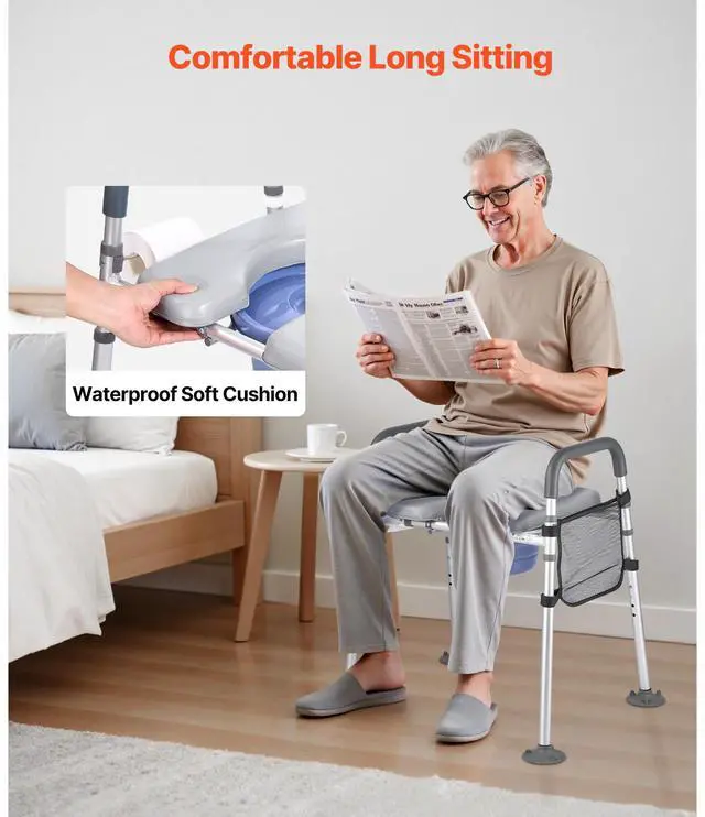 Bedside Commode Chair 4-in-1 Raised Toilet Seat Adjustable Height 500 lbs