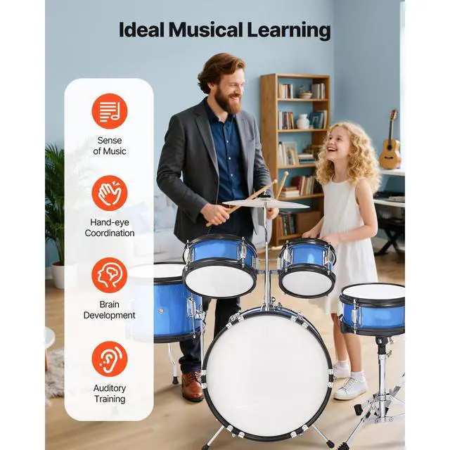 Kids Drum Set 5-Piece Junior Musical Drum Kit with 14 in Bass Drum (Blue)