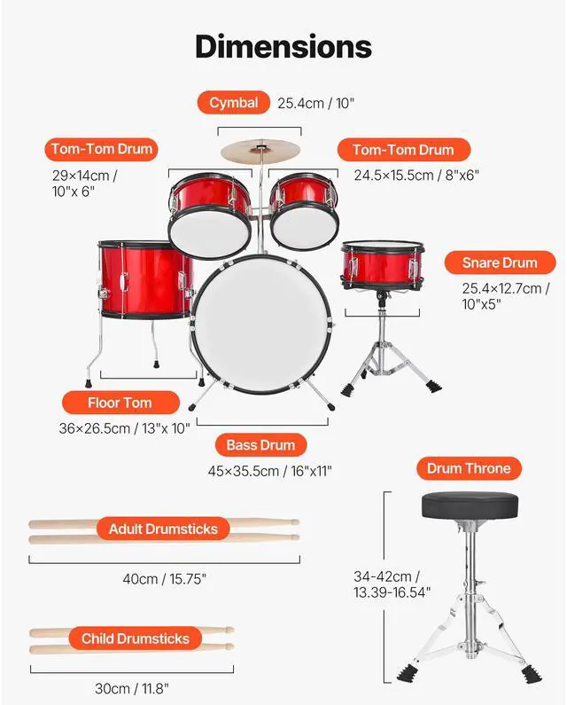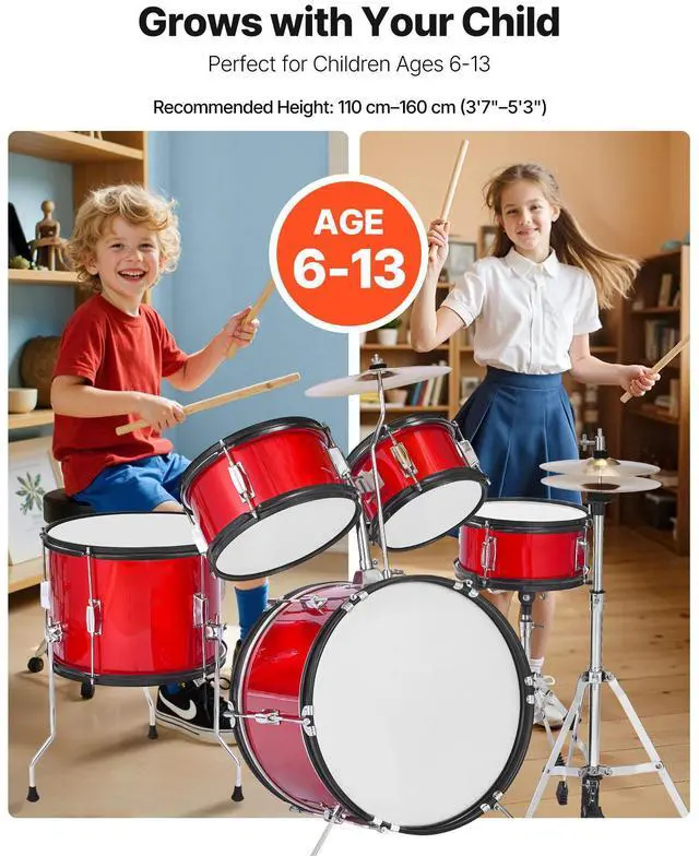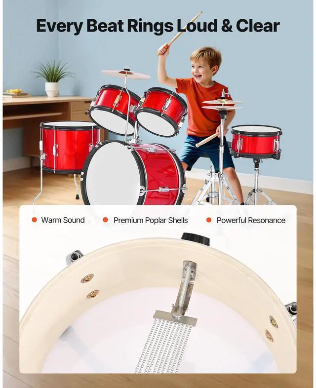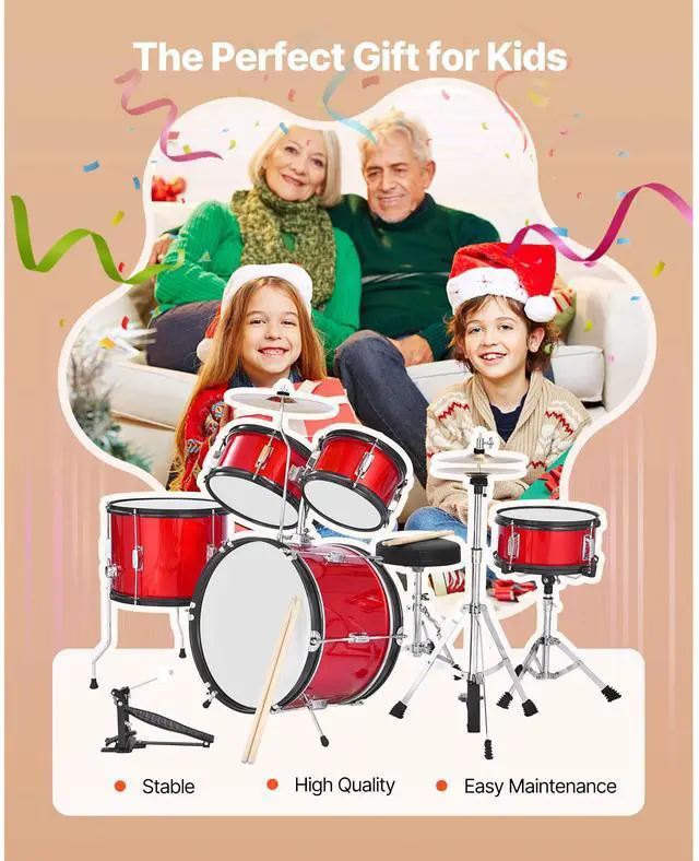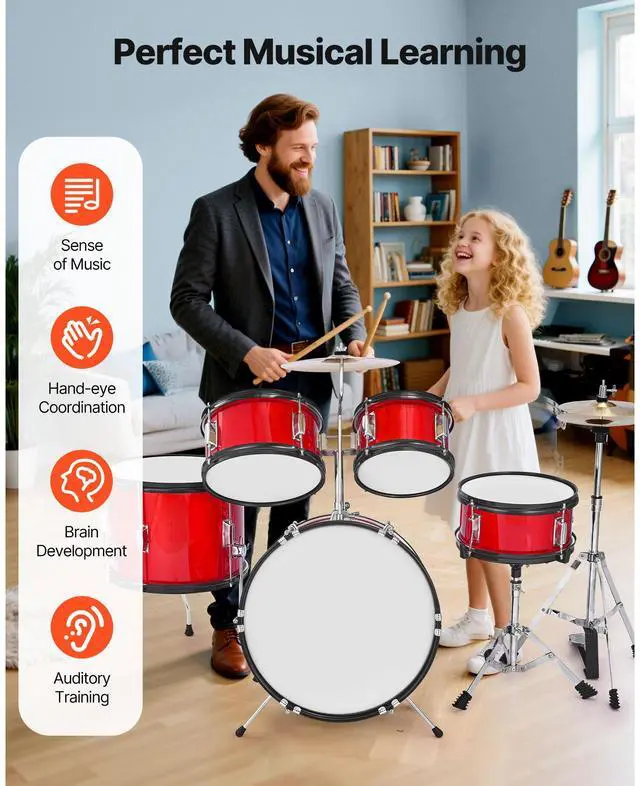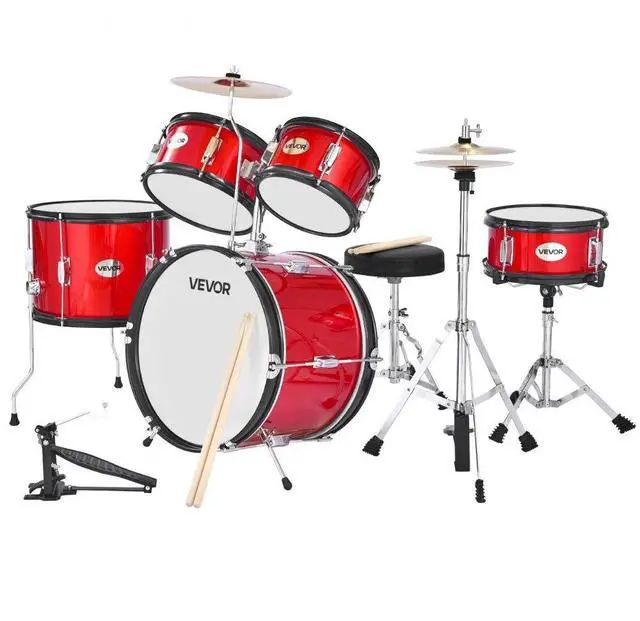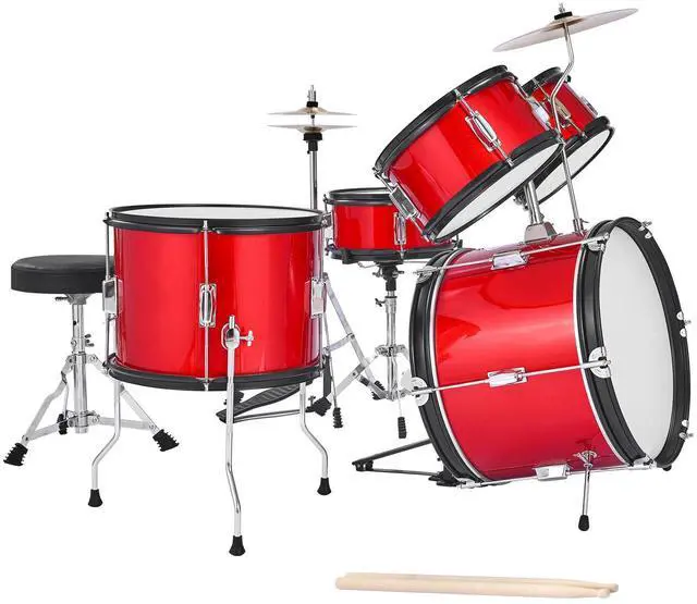Kids Drum Set 5-Piece Junior Musical Drum Kit with 16 in Bass Drum (Red)