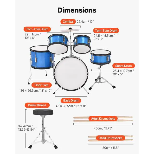 Kids Drum Set 5-Piece Junior Musical Drum Kit with 16 in Bass Drum (Blue)