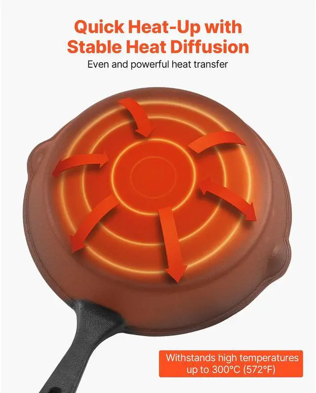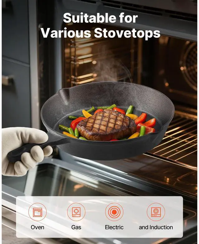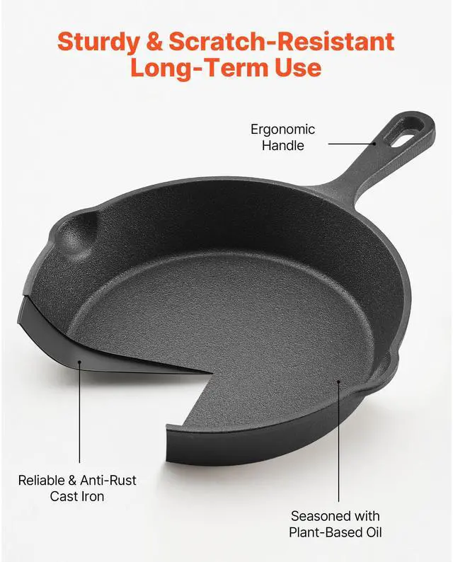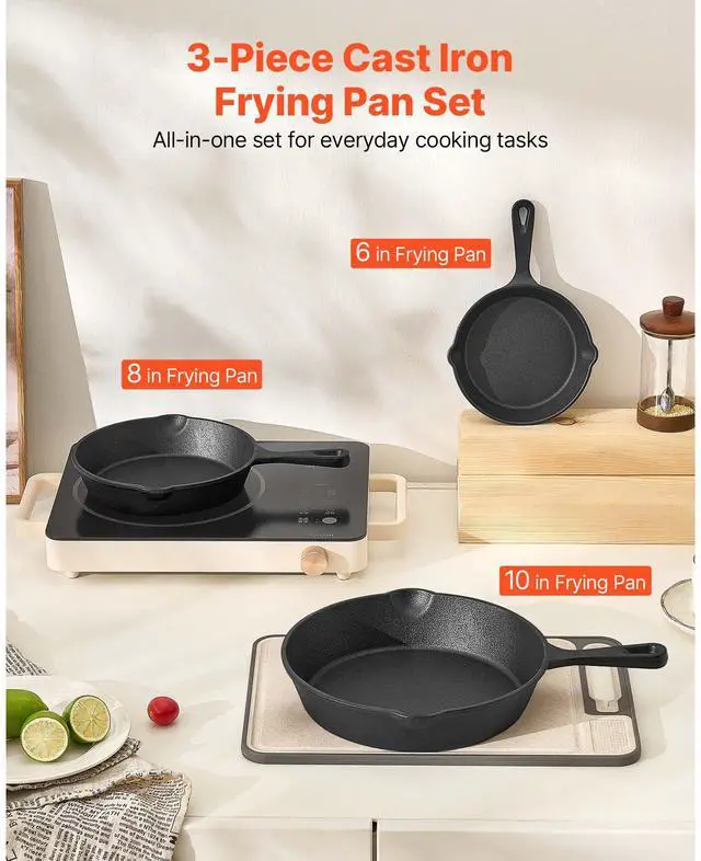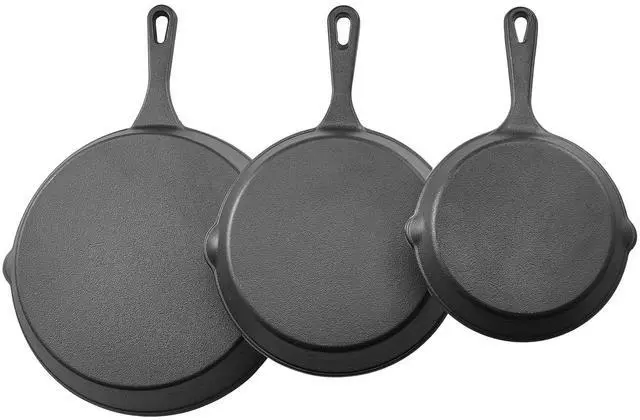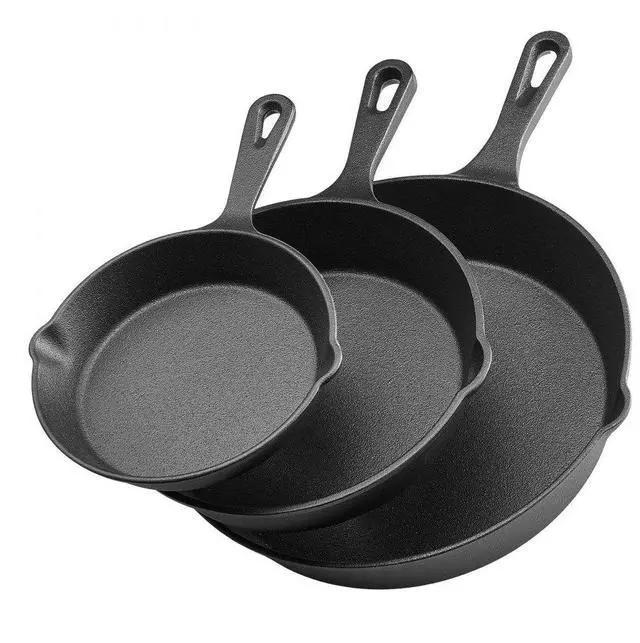 3 Piece Cast Iron Skillet Frying Pan Set 6 8 10 in Handle Pre-Seasoned Black