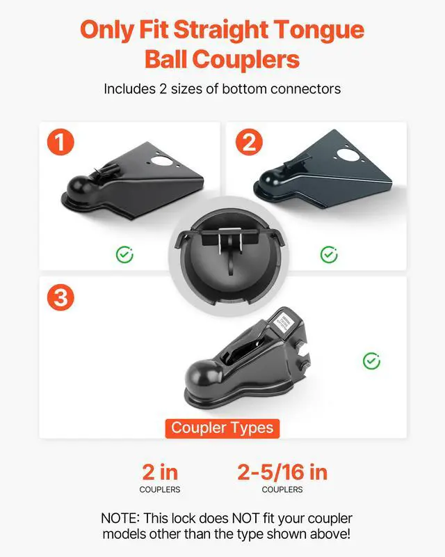 VEVOR Trailer Coupler Lock Fits 2 & 2-5/16-Inch Couplers Trailer Tongue Lock
