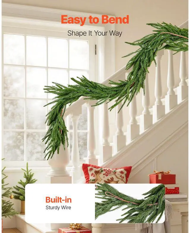 Faux Norfolk Christmas Garland 6Ft Artificial Greenery Xmas Decor for Fireplace