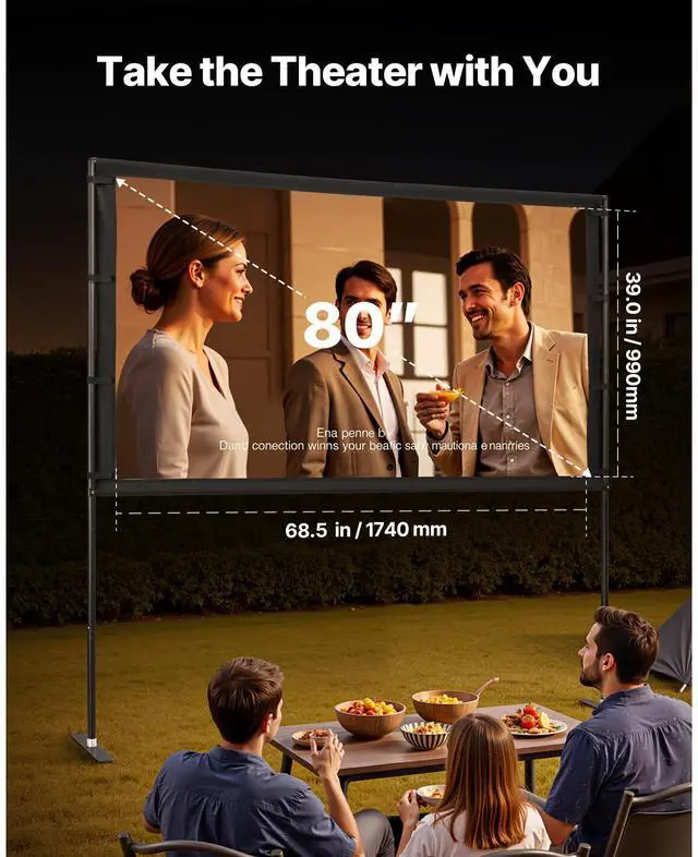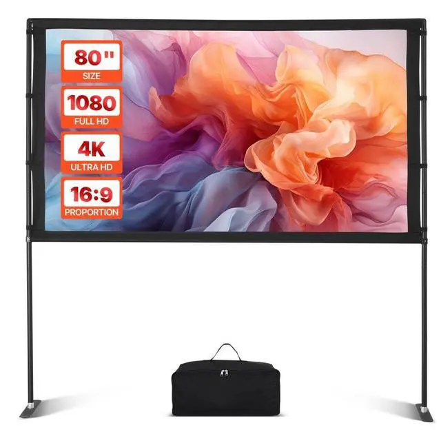 Projector Screen with 2 Stands 80 Inch 160° Wide Angle 4K HD 16:9 Movie Screen