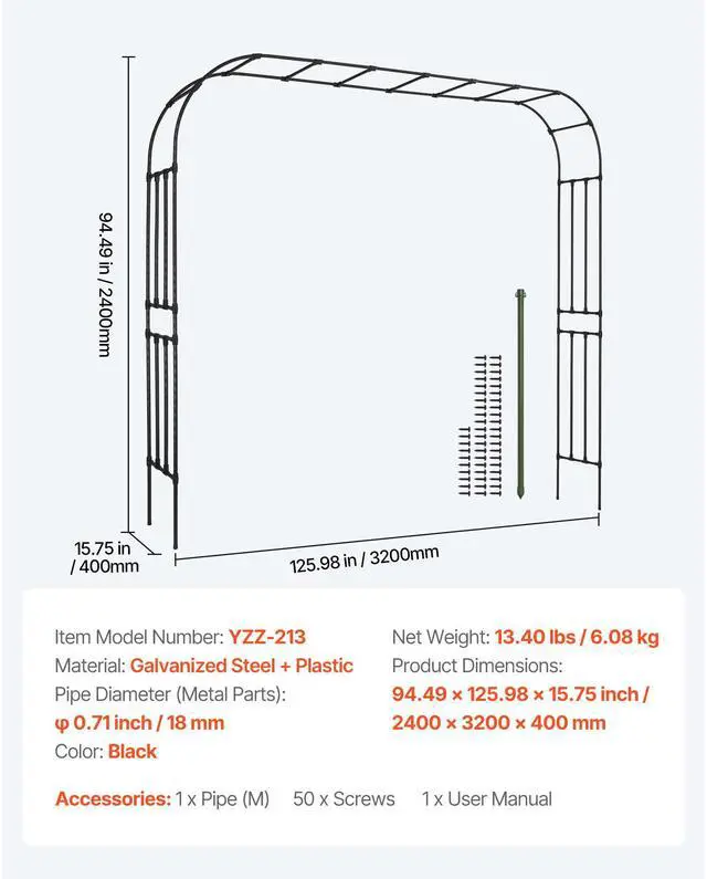 Pipe Diameter (Metal Parts): 0.71 inch / 18 mm,Color: Black,Item Model Number: YZZ-213,Material: Galvanized Steel + Plastic,Product Dimensions: 94.49 × 125.98 × 15.75 inch / 2400 × 3200 × 400 mm,Net Weight: 13.40 lbs / 6.08 kg
