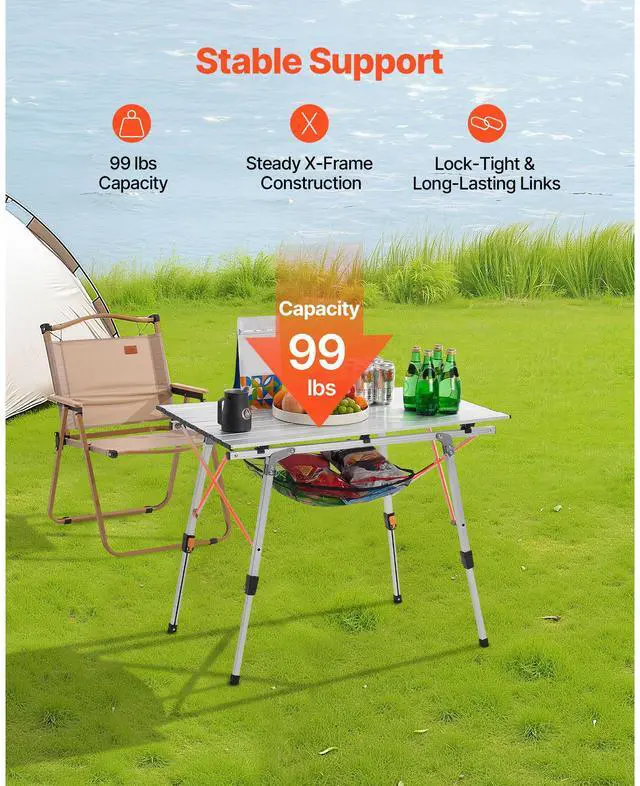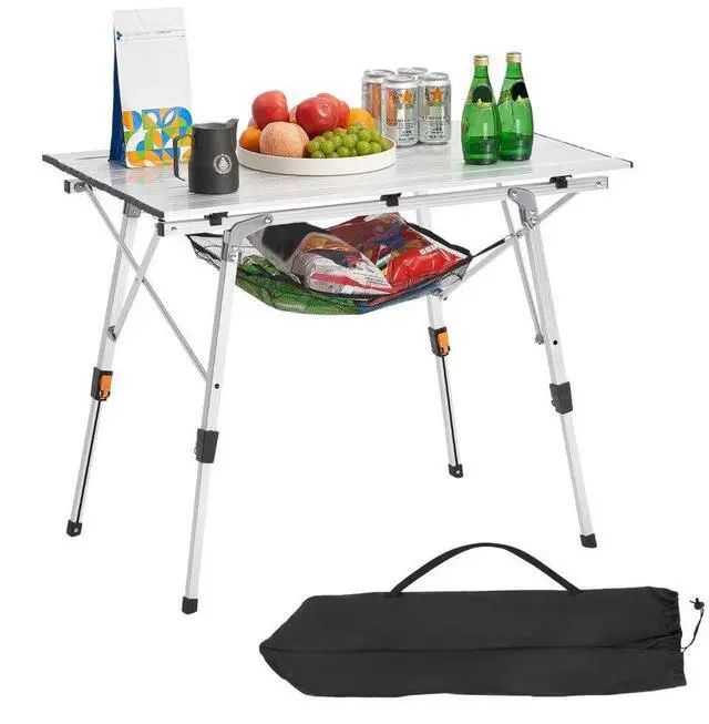 Folding Portable Camping Table Aluminum Outdoor Picnic Roll up Table Mesh Layer