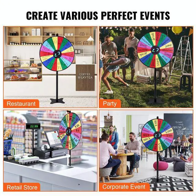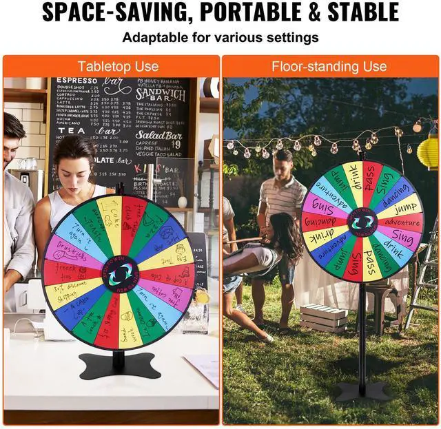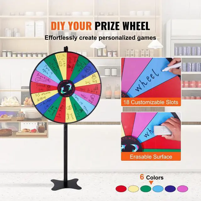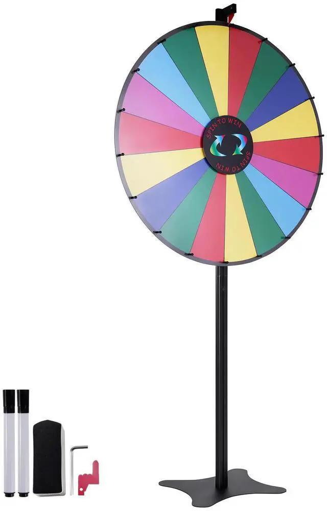 VEVOR 36 inch Spinning Prize Wheel, 18 Slots Spinning Wheel, Roulette Wheel with a Dry Erase and 2 Markers, Tabletop or Floor Standing Win Fortune Spin Games in Party Pub Trade Show Carnival