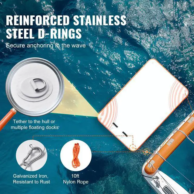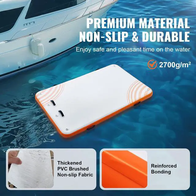Floating Dock Material: PVC Brushed Non-slip Fabric,Item Color: White + Orange,Item Height: 6 in / 152 mm,Item Model Number: RD244-152,D-Ring Material: Stainless Steel,Product Weight: 32.63 lbs / 14.8 kg,Product Dimensions: 8 x 5 ft / 2.43 x 1.52 m
