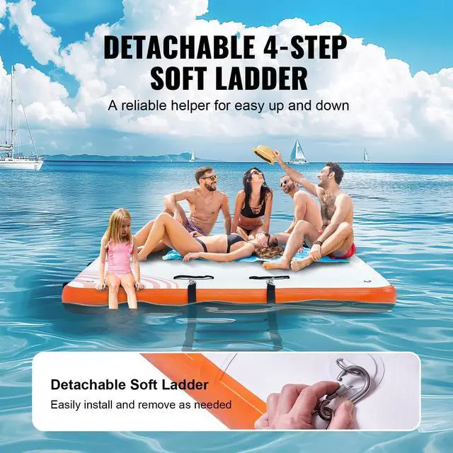 VEVOR Inflatable Floating Dock, 8 x 5FT Inflatable Dock Platform, Non-Slip Water Floating Dock Mat with Portable Carrying Bag & Detachable Ladder, Floating Platform Island Raft for Pool Beach Ocean