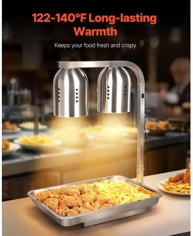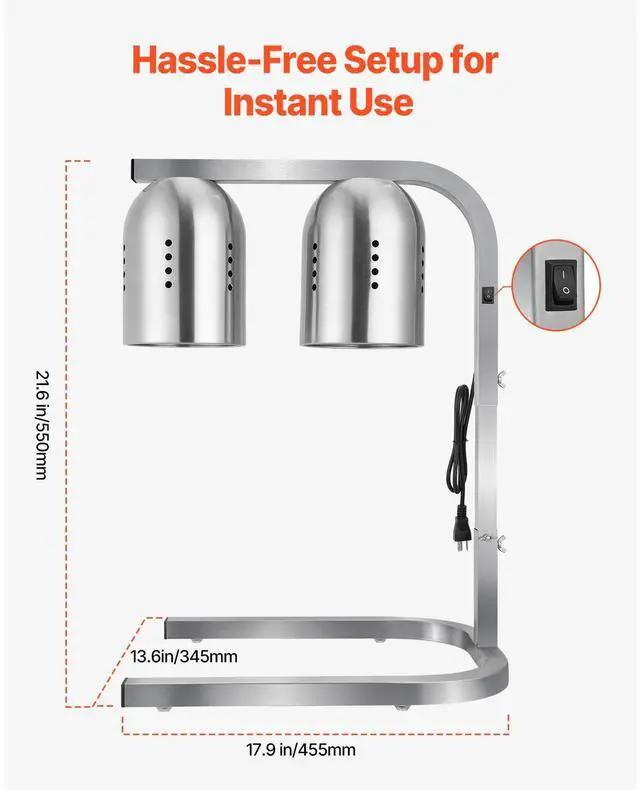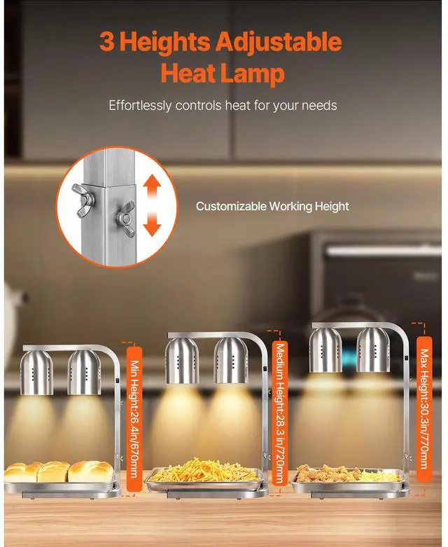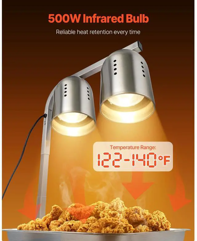 • Commercial Food Heat Lamp with 500W Bulbs for Food Restaurant Kitchen Buffet