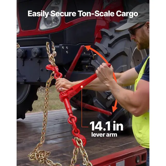 VEVOR Ratchet Chain Binder 3/8 in x 10 ft G80 Chains Load Binder for Hauling