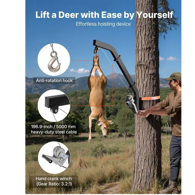 VEVOR Tree Mounted Deer Hoist 353 lbs Game Hoist Winch Lift with Gambrel & Winch