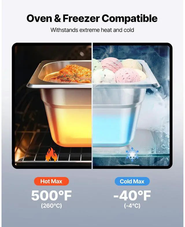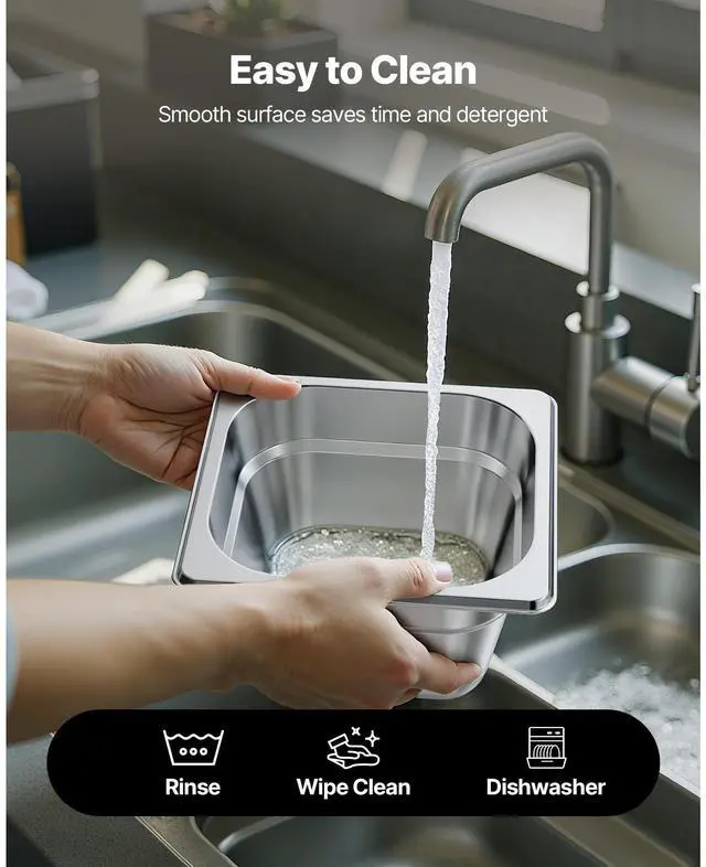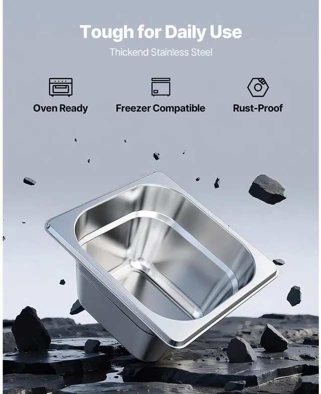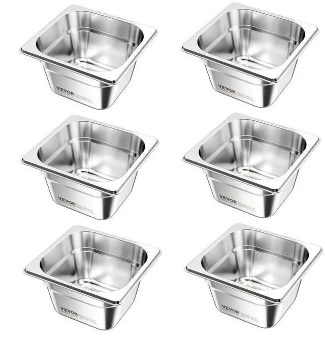 VEVOR 1/6 Size Hotel Pans Steam Table Pans 4 Inch Deep Stainless Steel 6 Pack