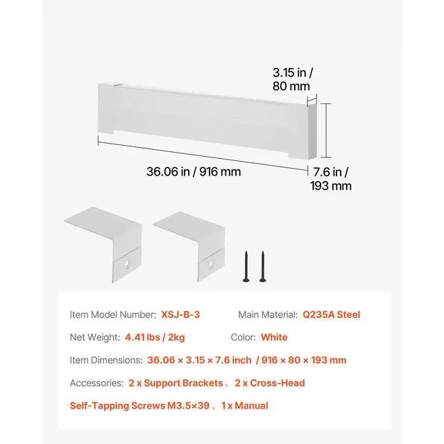 VEVOR 3 ft Baseboard Heater Covers Basic Series Standard for Bedroom White