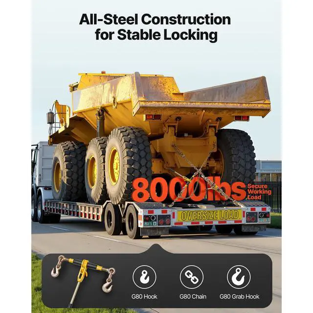 VEVOR Ratchet Chain Binder 5/16 in x 10 ft G80 Chains Load Binder for Hauling