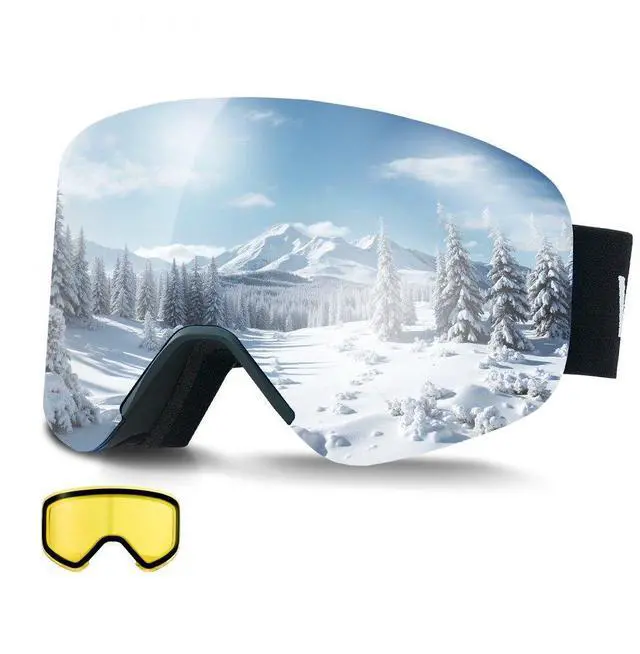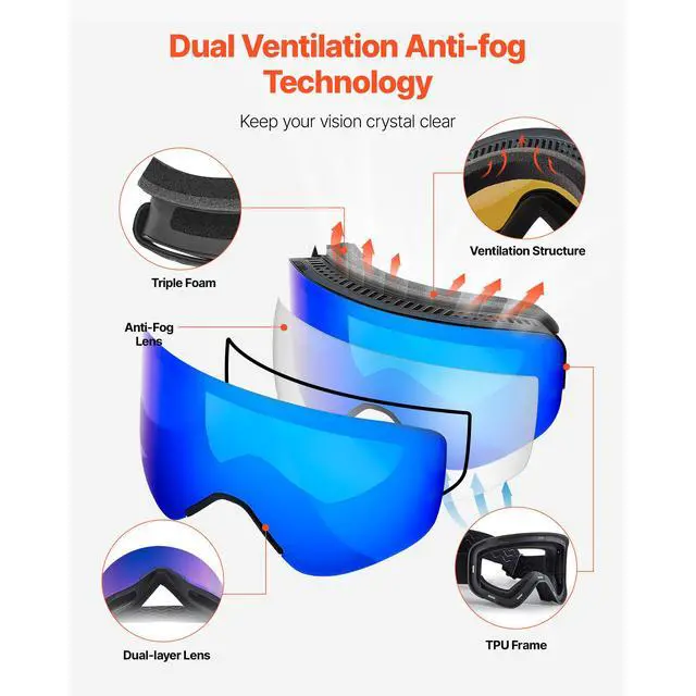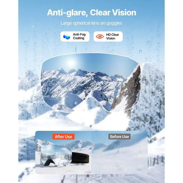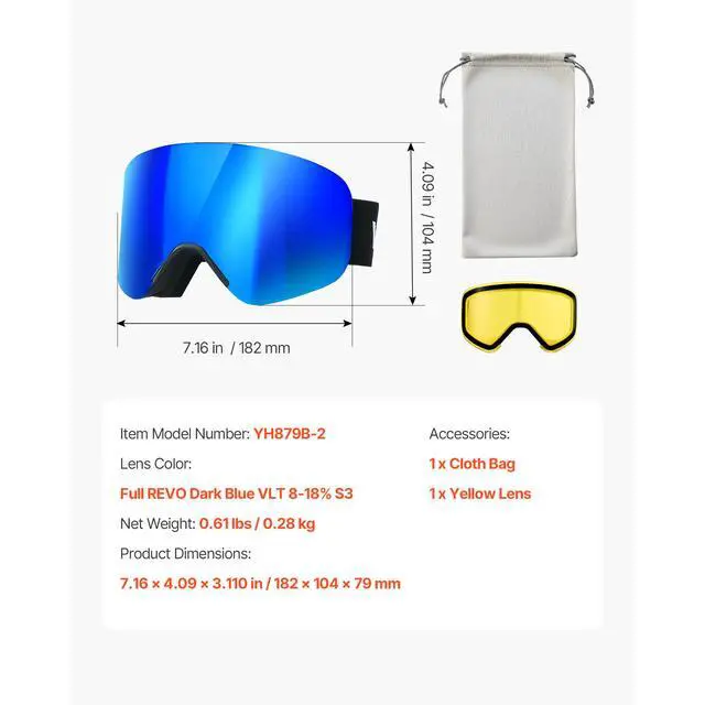 VEVOR Ski Goggles Magnet Cylindrical Lens Dark Blue Revo Coating Snow Goggles