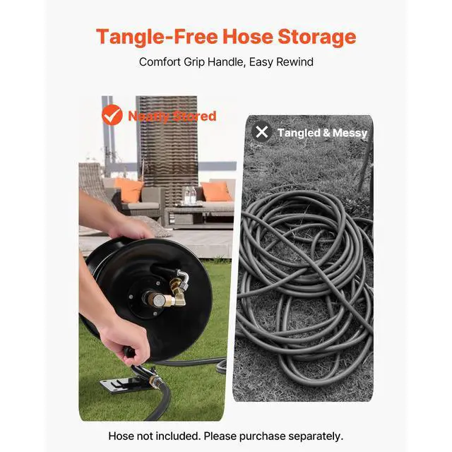 VEVOR Pressure Washer Hose Reel 50 ft x 3/8 inch Steel Wall Floor Mount 4000PSI