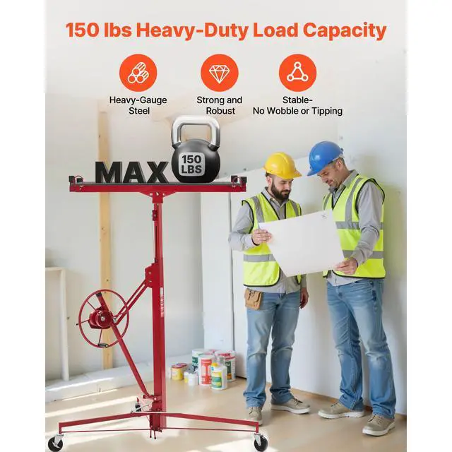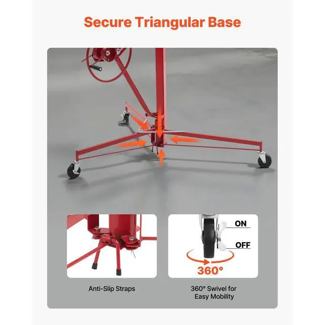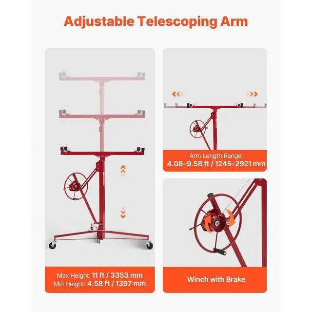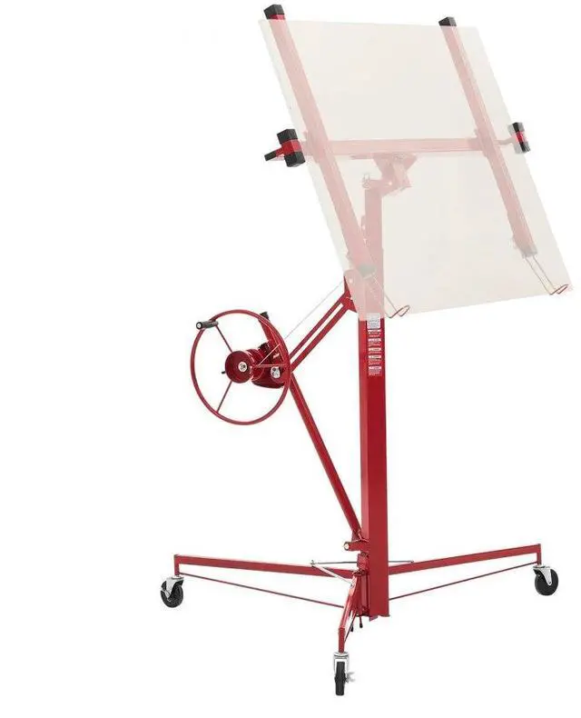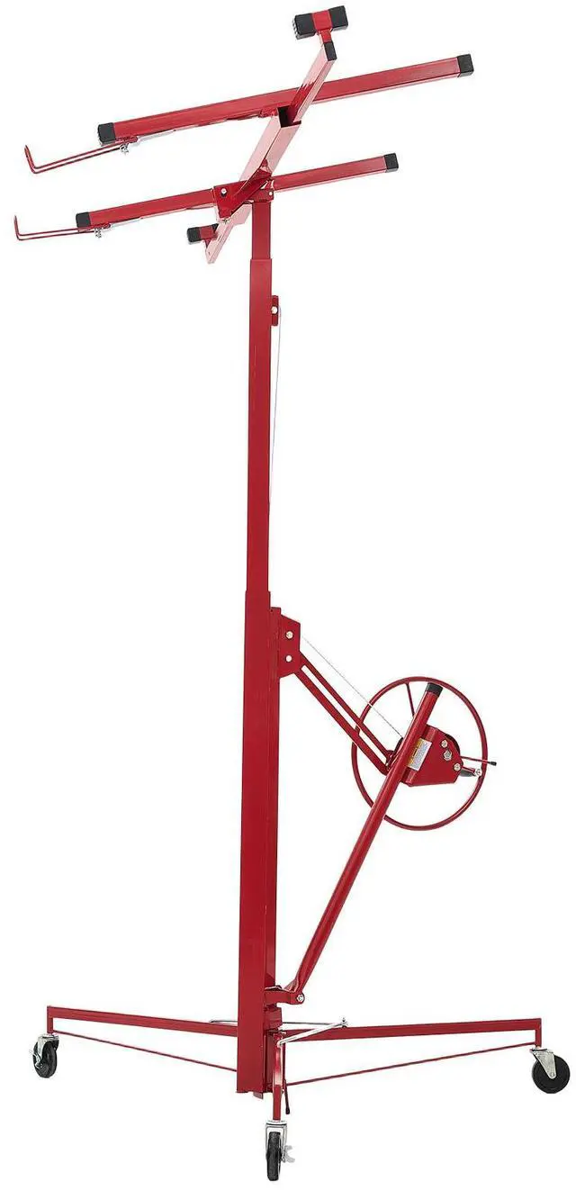 11ft Drywall Lift 150 lbs Sheetrock Hoist Adjustable Arm Lockable Wheels Red