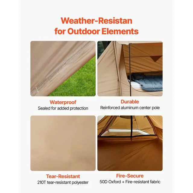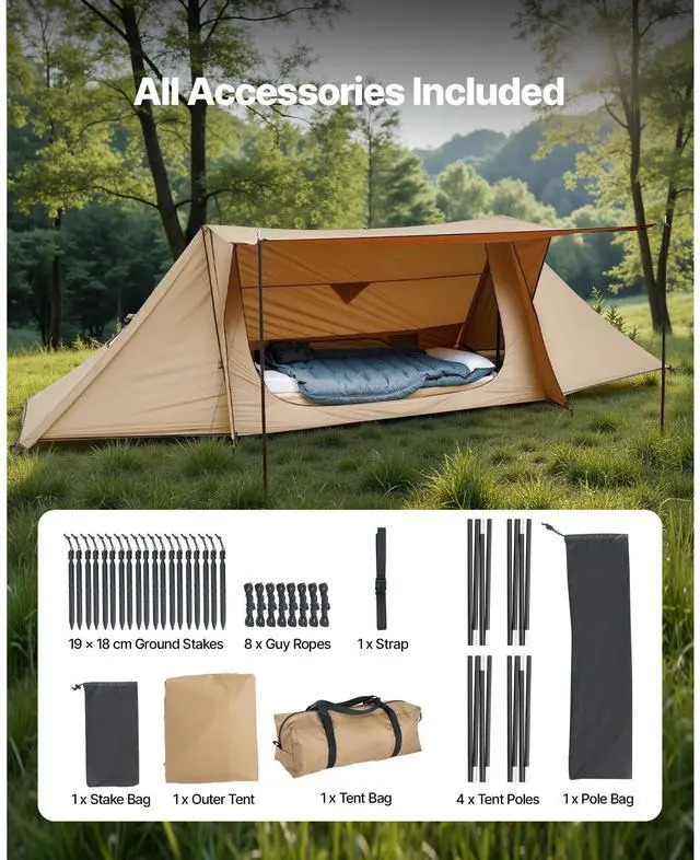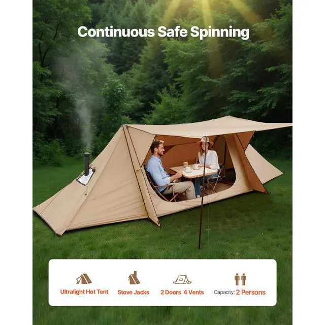 VEVOR Lightweight Hot Tent with Stove Jack & 2 Tarp Poles 2 Persons Camping