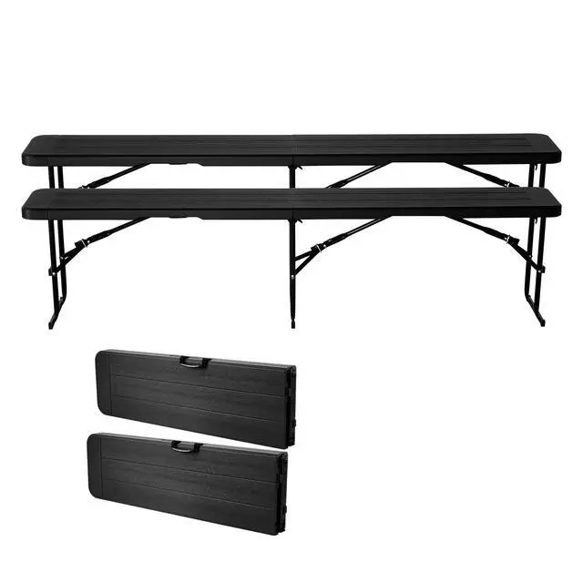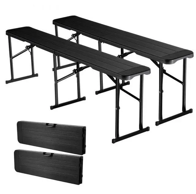 VEVOR 6FT Plastic Folding Bench 2 Pack Portable Outdoor Bench for Garden Black