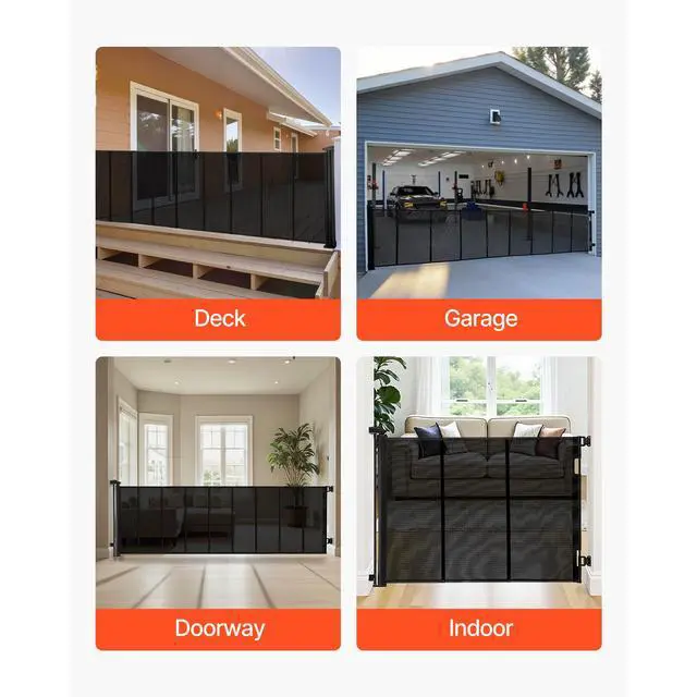VEVOR Retractable Baby Gate Mesh Dog Gate 202.7 inch Wide 39 inch Tall Black