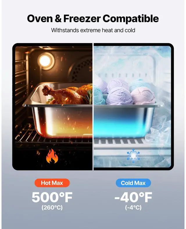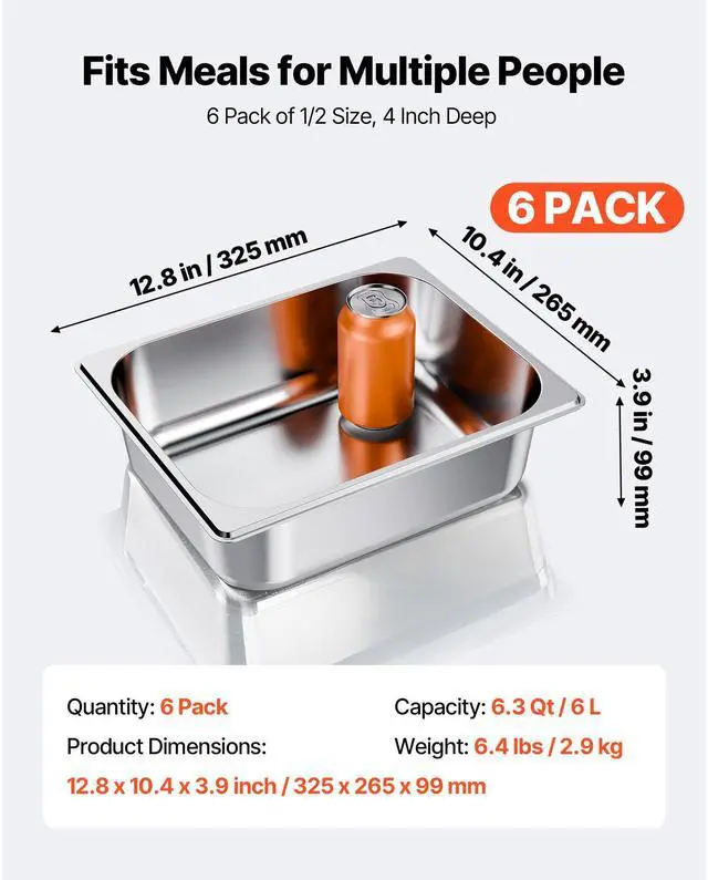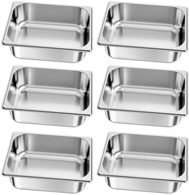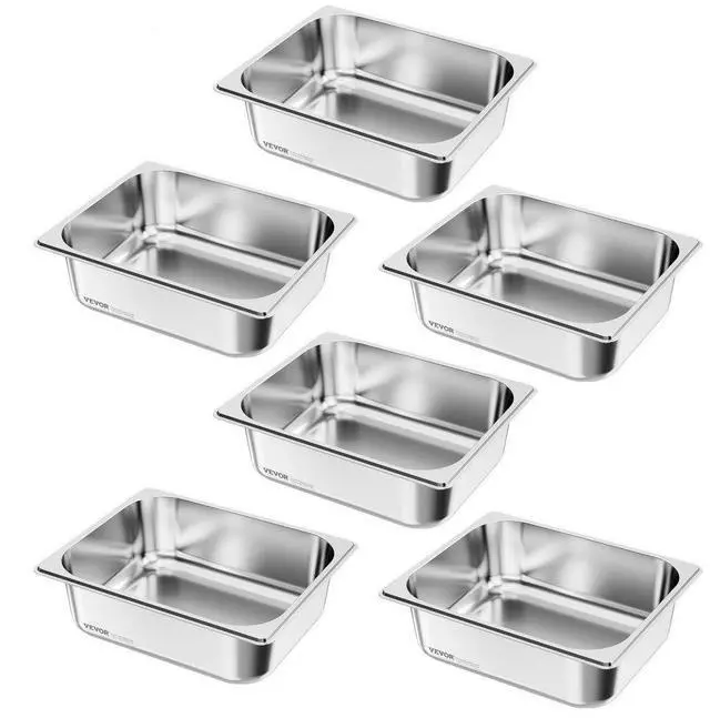 VEVOR 1/2 Size Hotel Pans Steam Table Pans 4 Inch Deep Stainless Steel 6 Pack