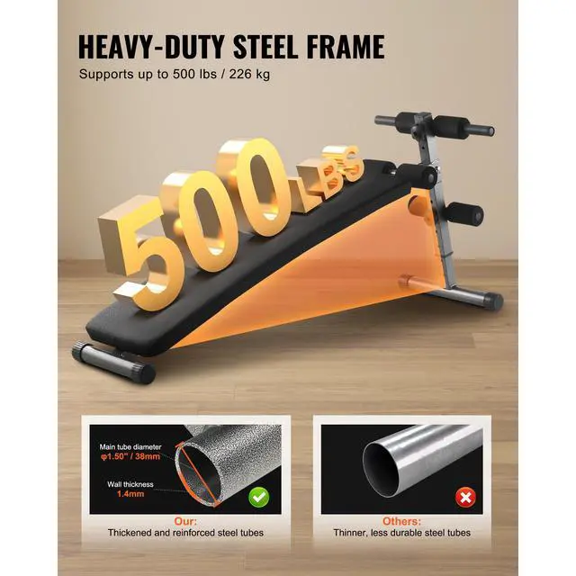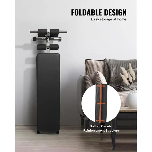 VEVOR Sit Up Bench Folding Curved Ab Bench 5 Adjustable Height 500 LBS Capacity