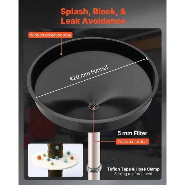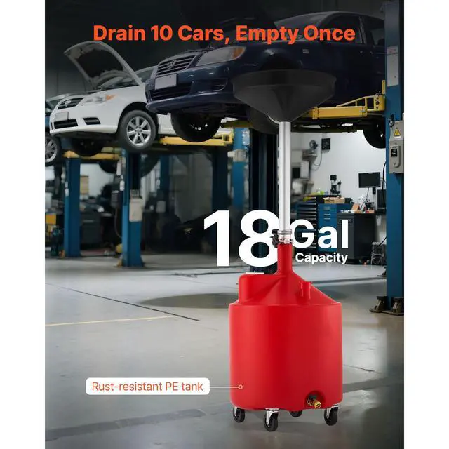 VEVOR Waste Oil Drain Tank 18 Gallon Industrial Fluid Drain Tank with Funnel