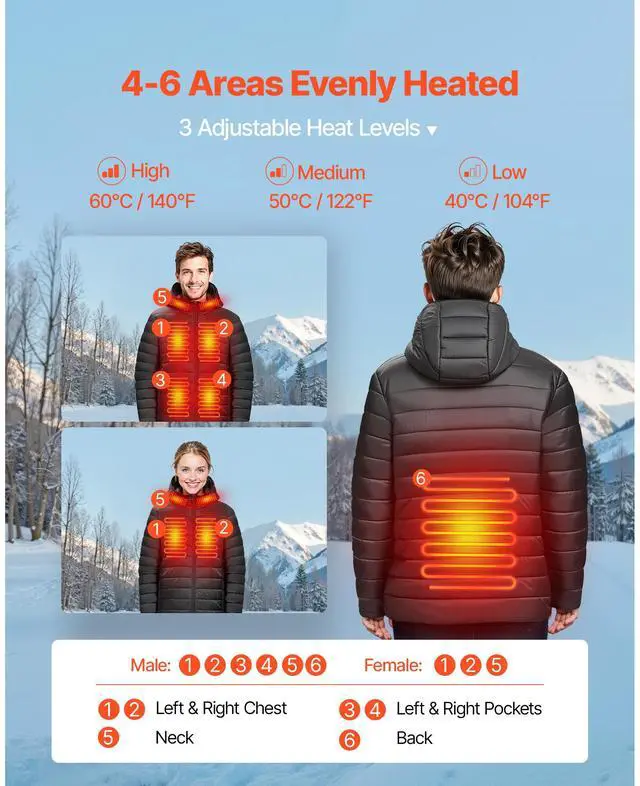 Size: L,Three Temperature Levels: 104140 / 4060 ,Color: Black,Item Model Number: RHB-003,Style: Men,Input Voltage: 7.4 V,Item Dimensions: 64.57 × 36.22 inch / 1640 x 920 mm,Net Weight: 1.9 lbs / 0.86 kg,Power: 13 W,Main Material: Waterproof Outer Fabric + Cotton Lining,Power Bank Capacity: 8000 mAh