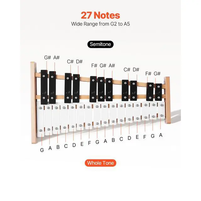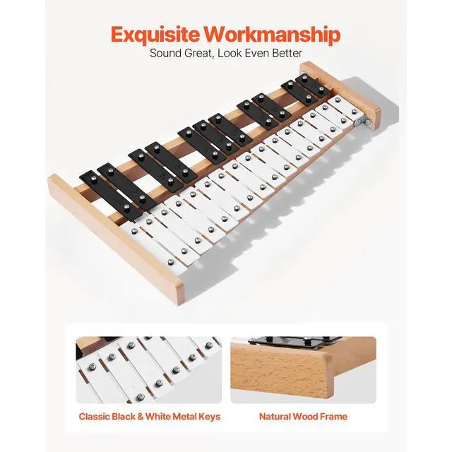 VEVOR Glockenspiel Xylophone 27 Notes Percussion Instrument with Metal Keys