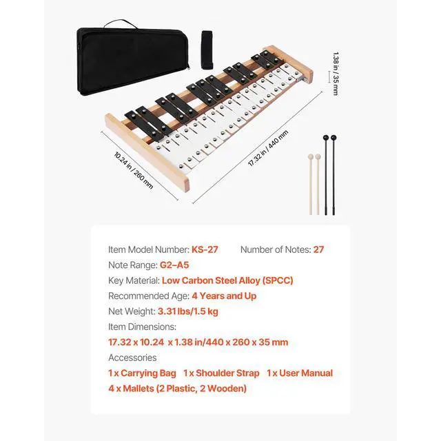 Key Material: Low Carbon Steel Alloy (SPCC),Recommended Age: 4 Years and Up,Item Model Number: KS-27,Number of Notes: 27,Note Range: G2A5