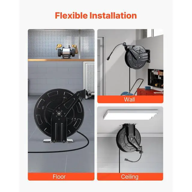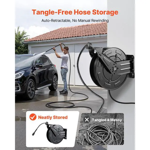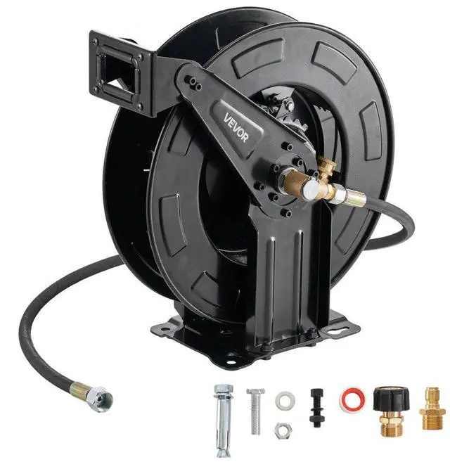 VEVOR Pressure Washer Hose Reel 50ft x 3/8in Retractable 4000PSI Auto-Rewinding