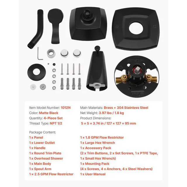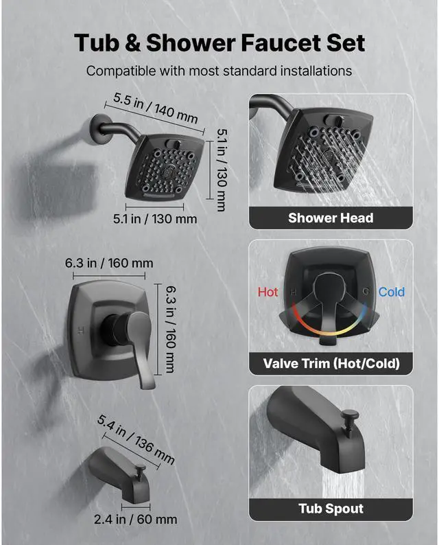 Shower Head Size: 5.12 x 5.12 in/130x130 mm