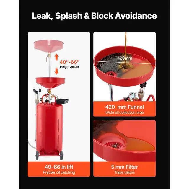 VEVOR Waste Oil Drain Tank 21 Gallon Air Operated Portable Oil Drainer